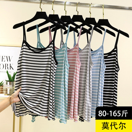 莫代尔条纹吊带背心夏季内搭圆领无袖上衣女休闲大码可外穿T恤衫