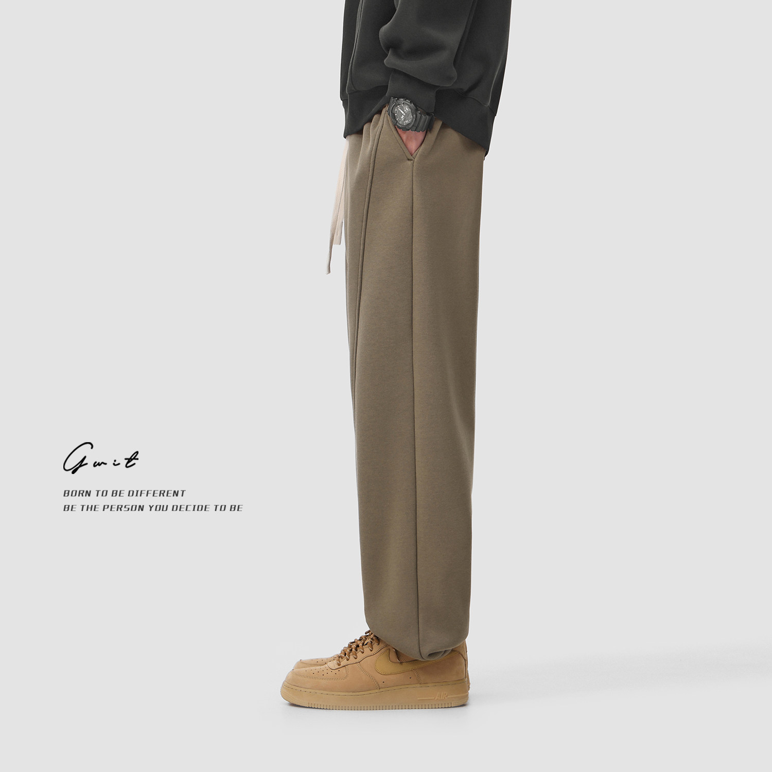 GWIT 美拉德复古分割卫裤男冬季保暖加绒加厚抽绳束脚运动休闲裤