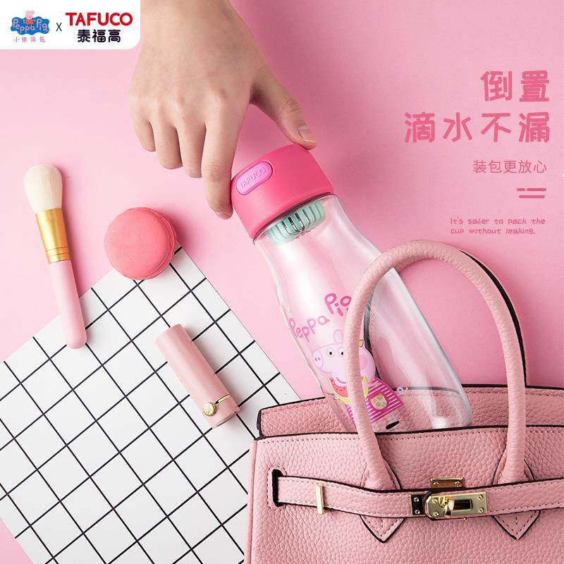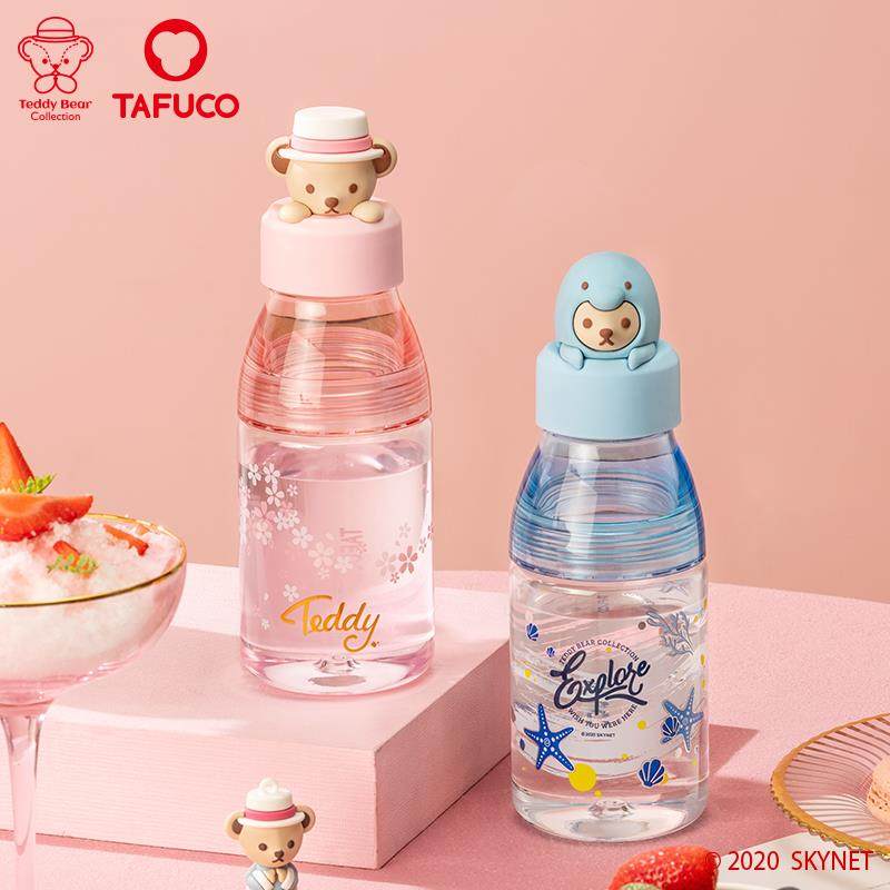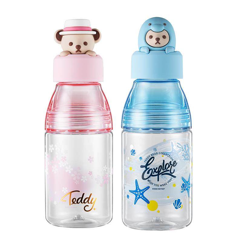 日本泰福高女可爱泰迪随手杯便携高颜值卡通塑料杯子儿童防摔水杯
