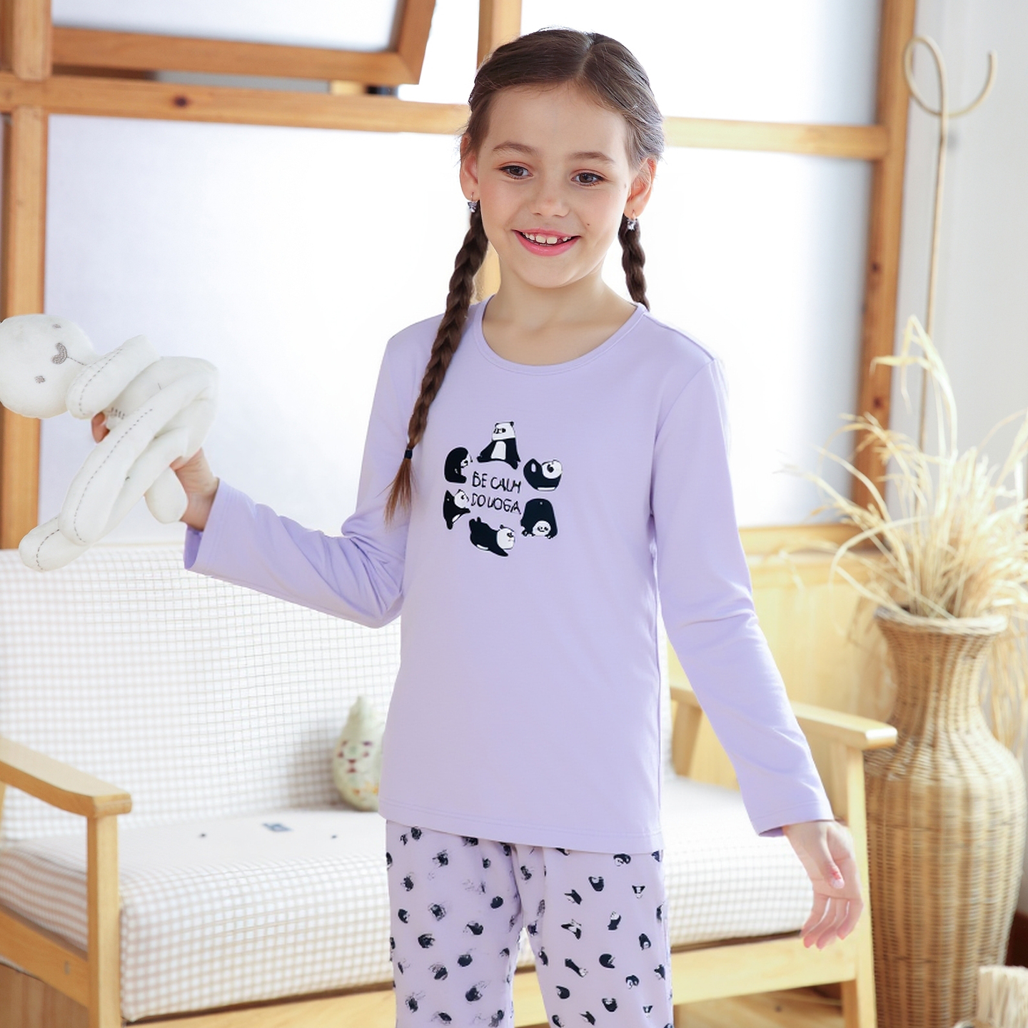 舒雅女童莫代尔家居服25秋季新款熊猫印花长袖长裤睡衣套装25249H
