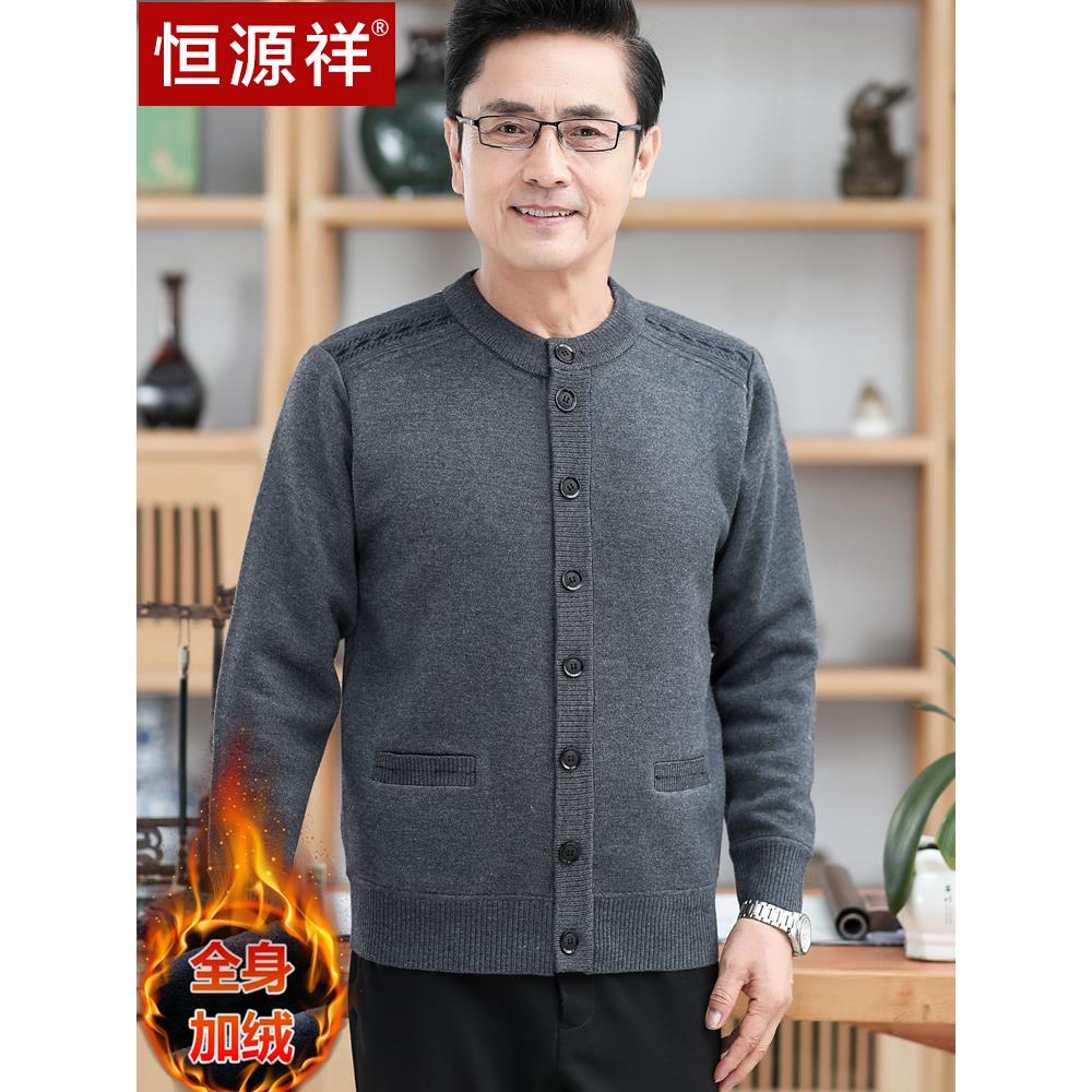 恒源祥羊毛衫男开衫加绒加厚纯羊毛中老年人圆领羊绒保暖毛衣外套