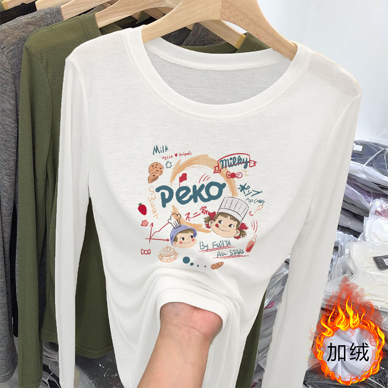 白色纯棉打底衫女秋冬季小众设计感时尚洋气加绒内搭长袖t恤上衣