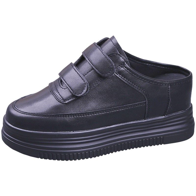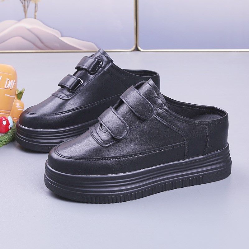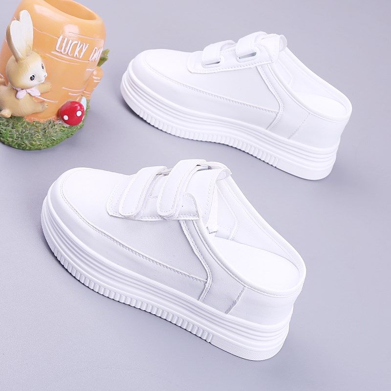 松糕厚底女鞋2025新款低帮一脚蹬魔术贴半拖女单鞋内增高小白鞋女