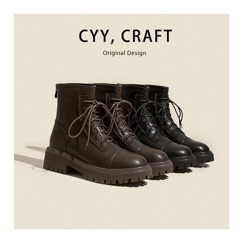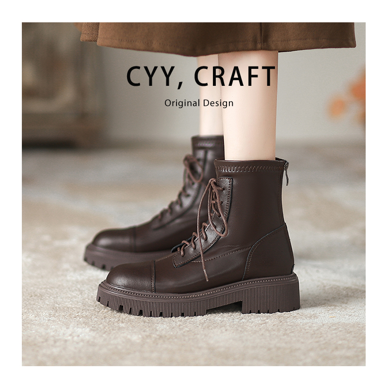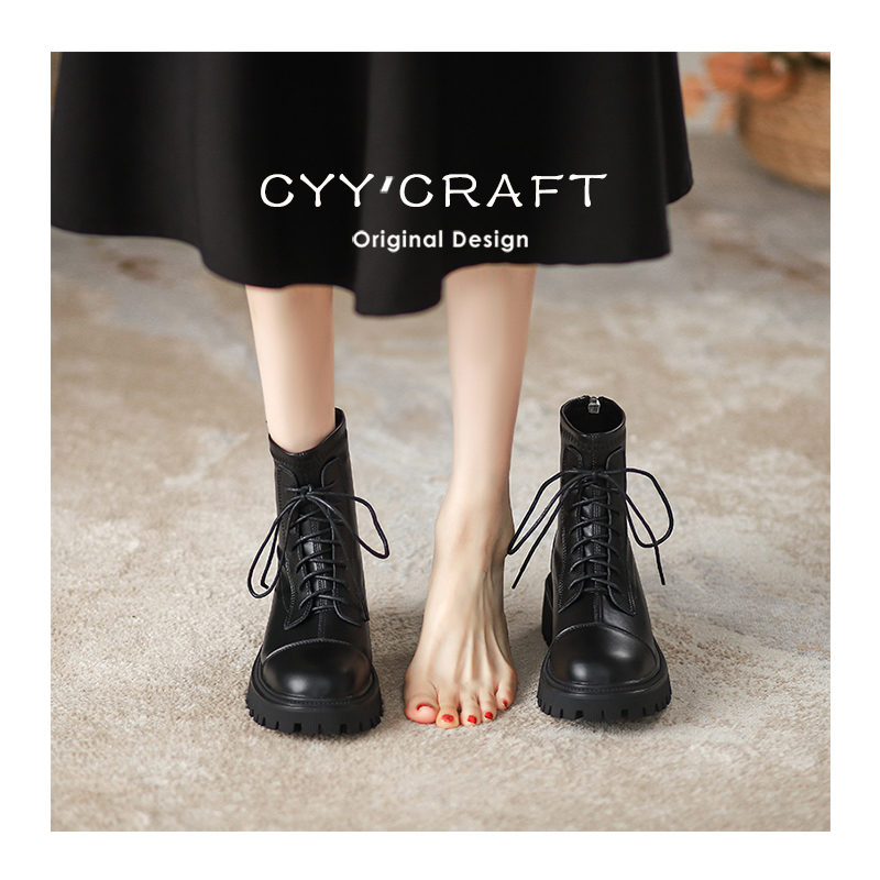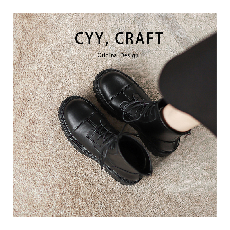真皮厚底马丁靴女2025新款百搭英伦风短靴小个子内增高加绒靴子女