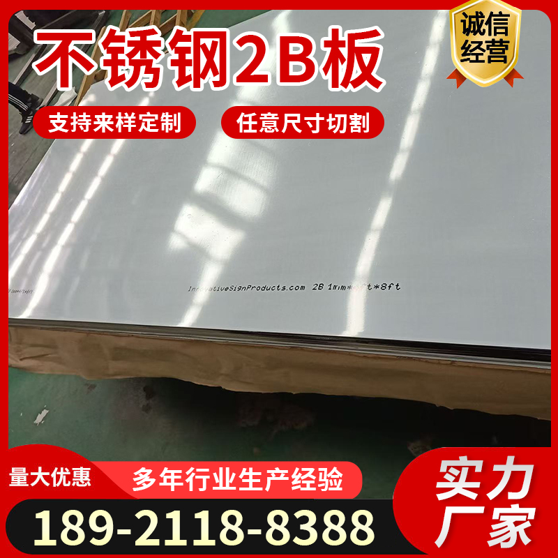 201/304/316L不锈钢2B板钢板拉丝足厚0.3 0.5 0.8 1.1 2 8mm定制