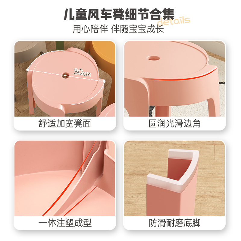 小凳子家用c加厚塑料可叠放茶几矮凳网红圆凳时尚创意儿童风车板