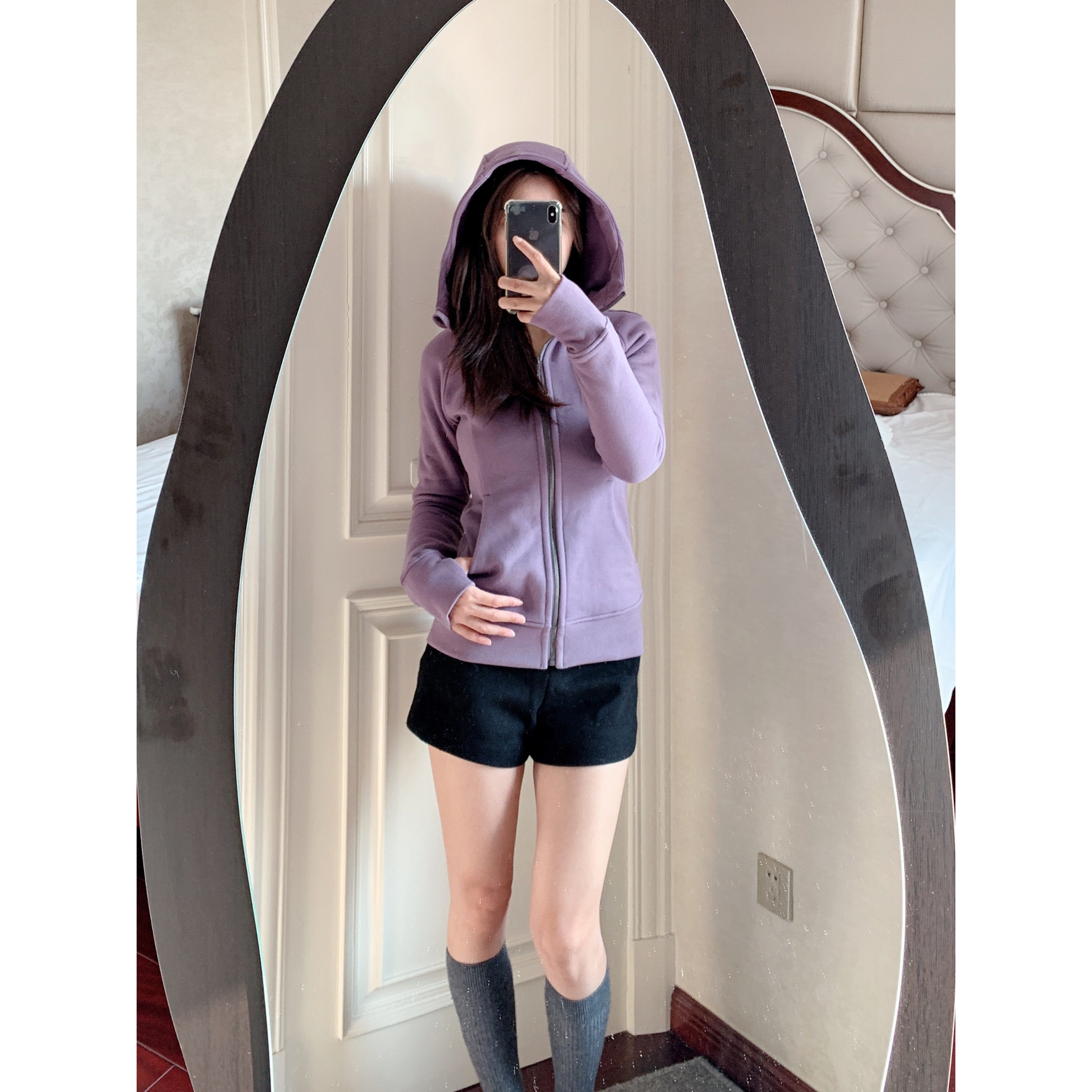 【陈小圆】韩国设计师修身版加绒卫衣雾霾紫蓝连帽拉链开衫外套