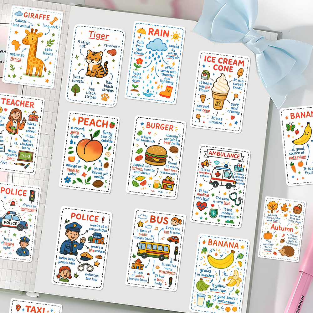 96张英文科普图鉴贴纸幼儿英语启蒙单词科普趣味学习创意装饰贴画