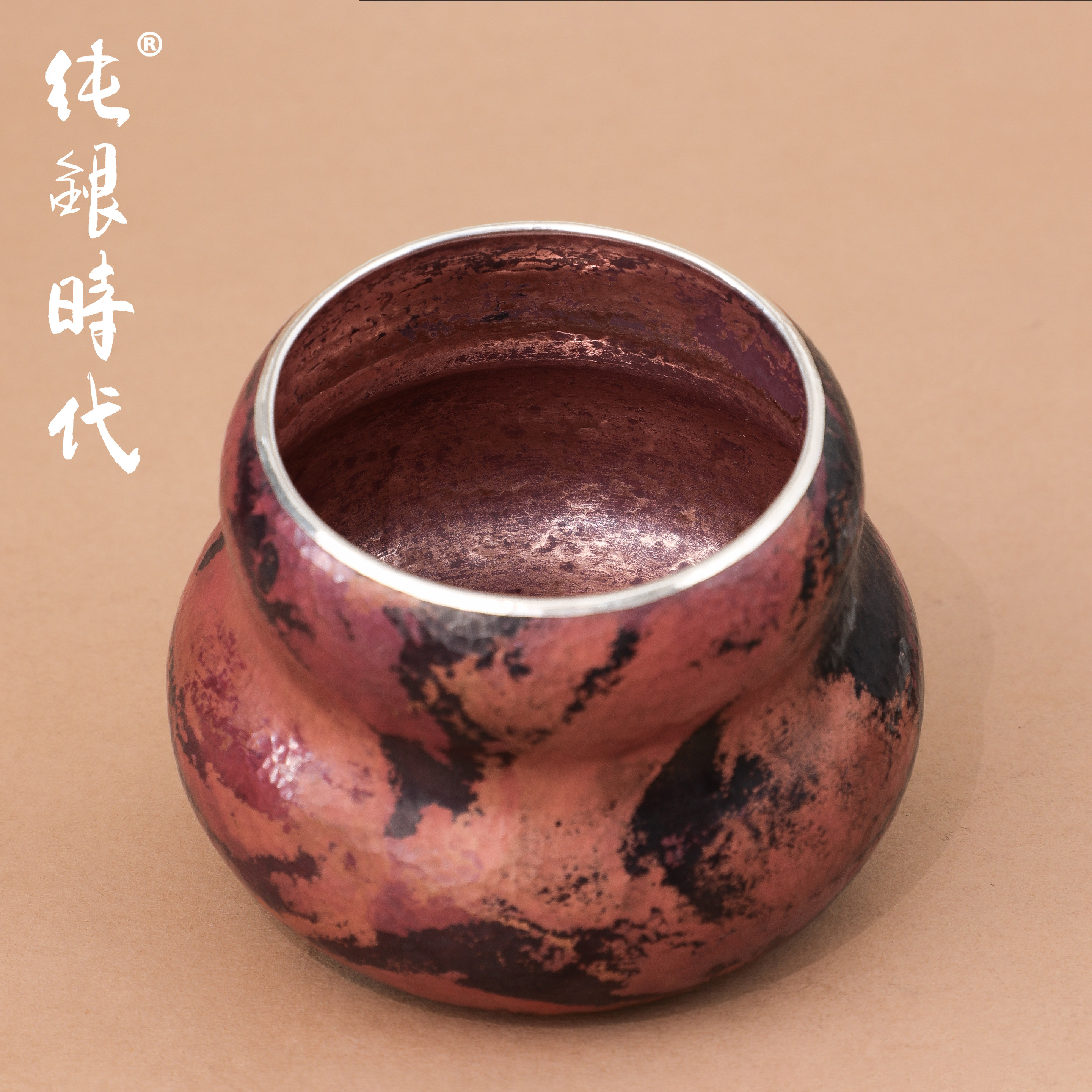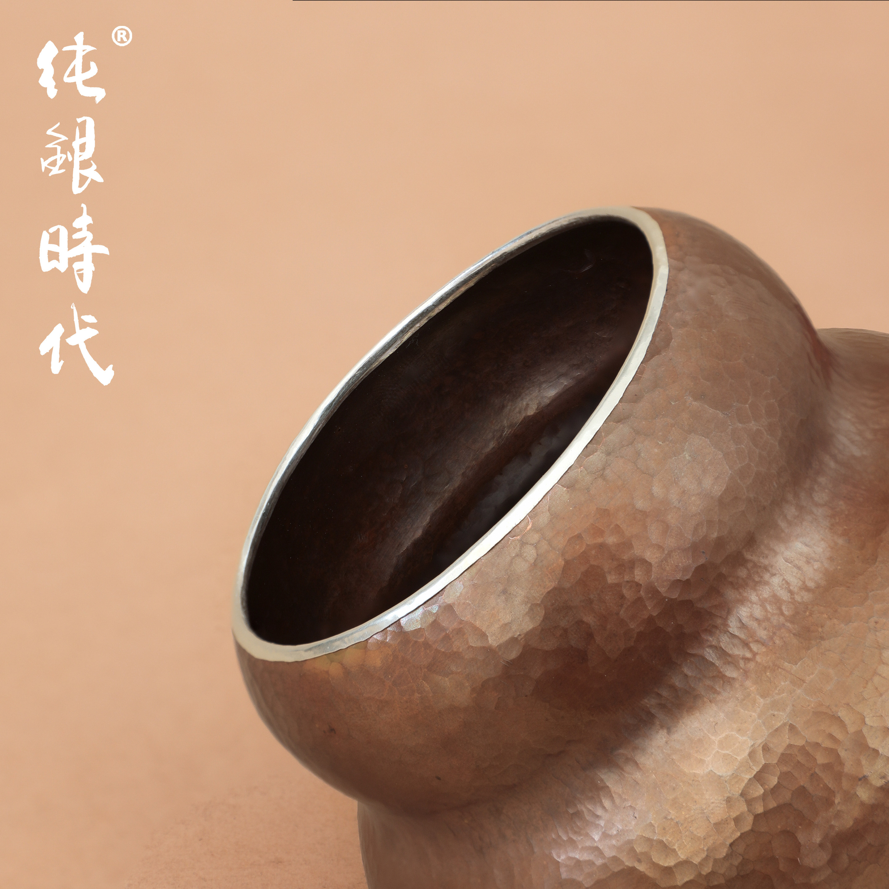 纯银时代 葫芦银盖铜身建水纯银999复古中式纯手工水盂340ml