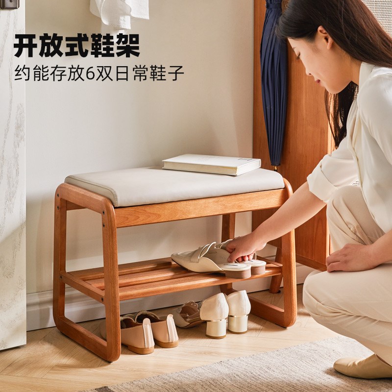 实木换鞋凳简约家用玄关可坐式鞋架门口软包坐Q垫入户凳子鞋柜一