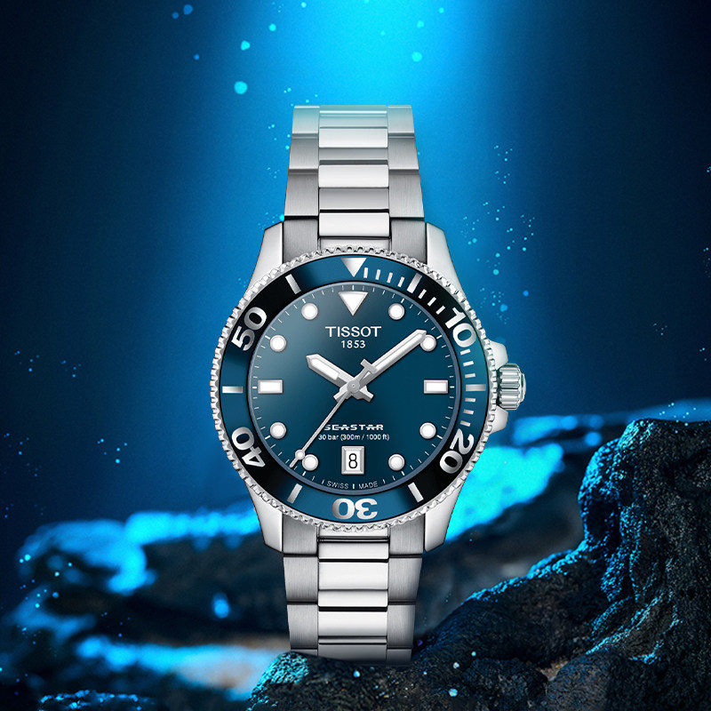 天梭海星1000钢带石英潜水女表