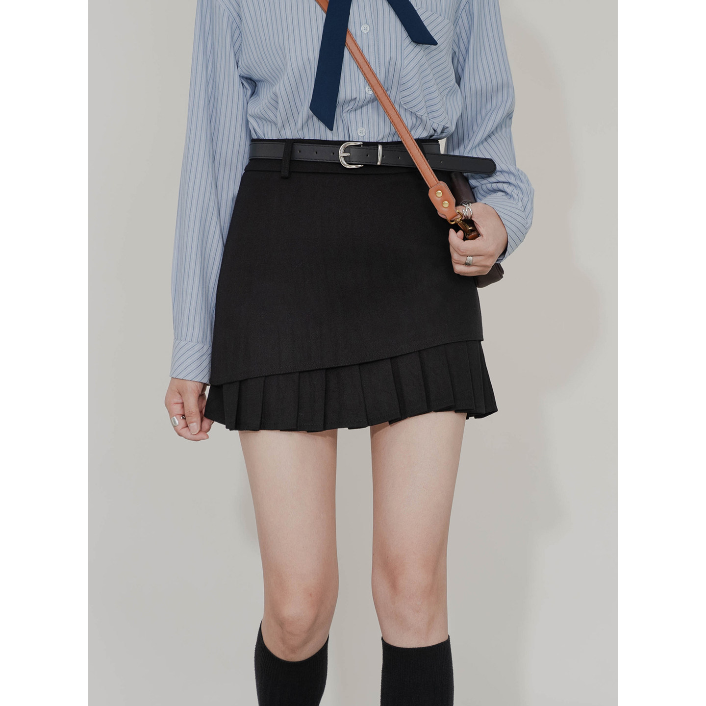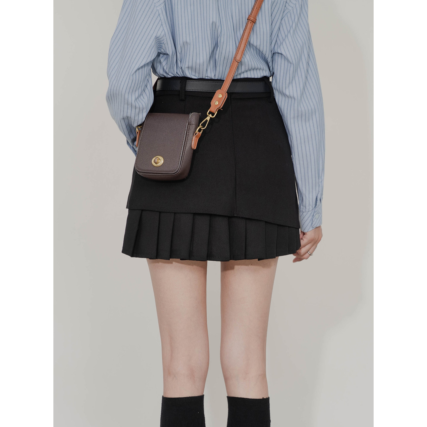 修身百搭内衬拼接百褶呢子短裙女