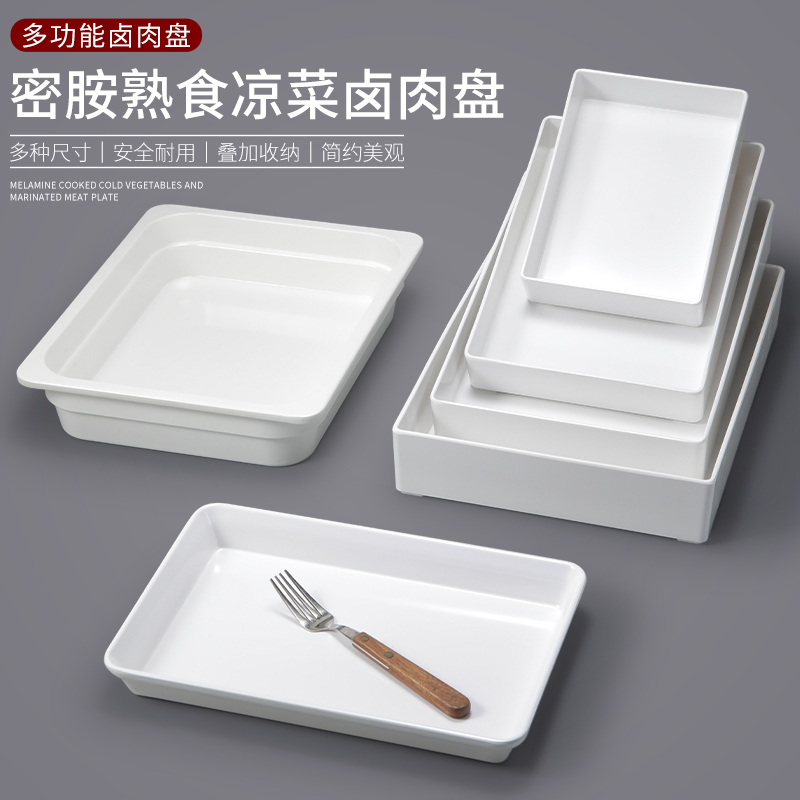 10个装卤菜卤味熟食凉菜盘子商用密胺托盘长方形塑料食品展示盘