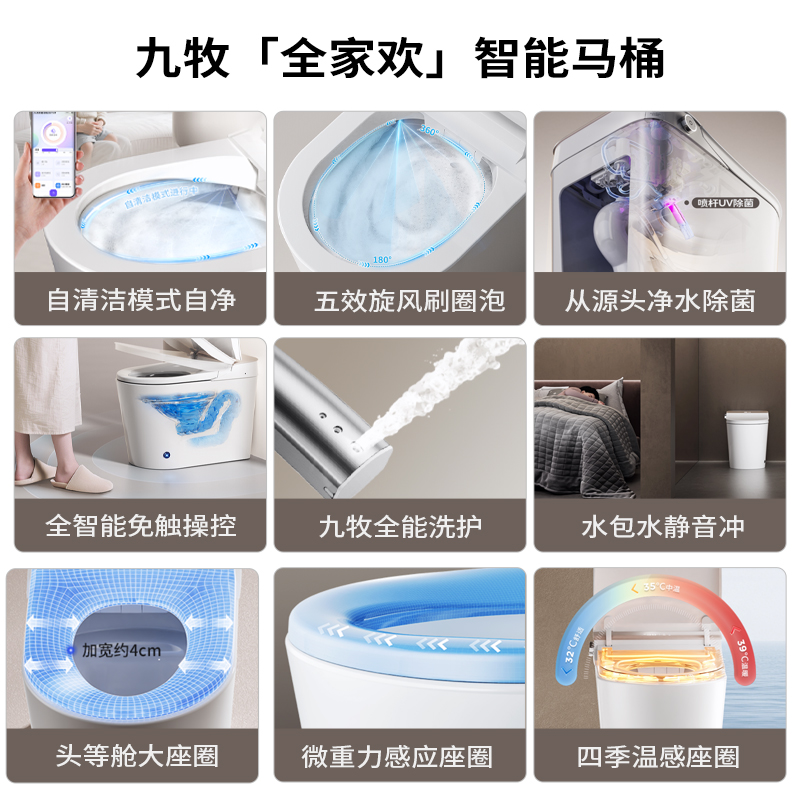 九牧全家欢智能马桶全自动脚感翻盖旋风刷圈泡家用卫浴智能坐便器