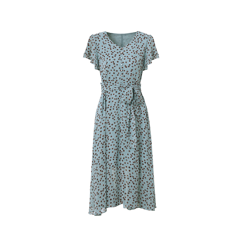 海青蓝短袖波点连衣裙