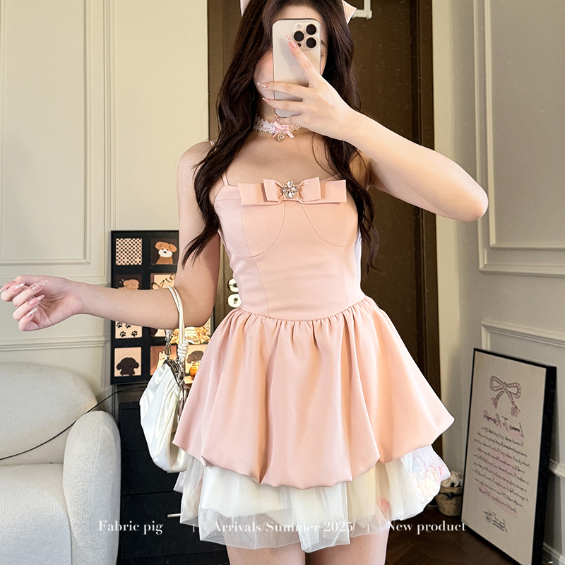 织物猪 霜糖物语 甜美约会花苞连衣裙女夏日吊带裙浪漫公主短裙子