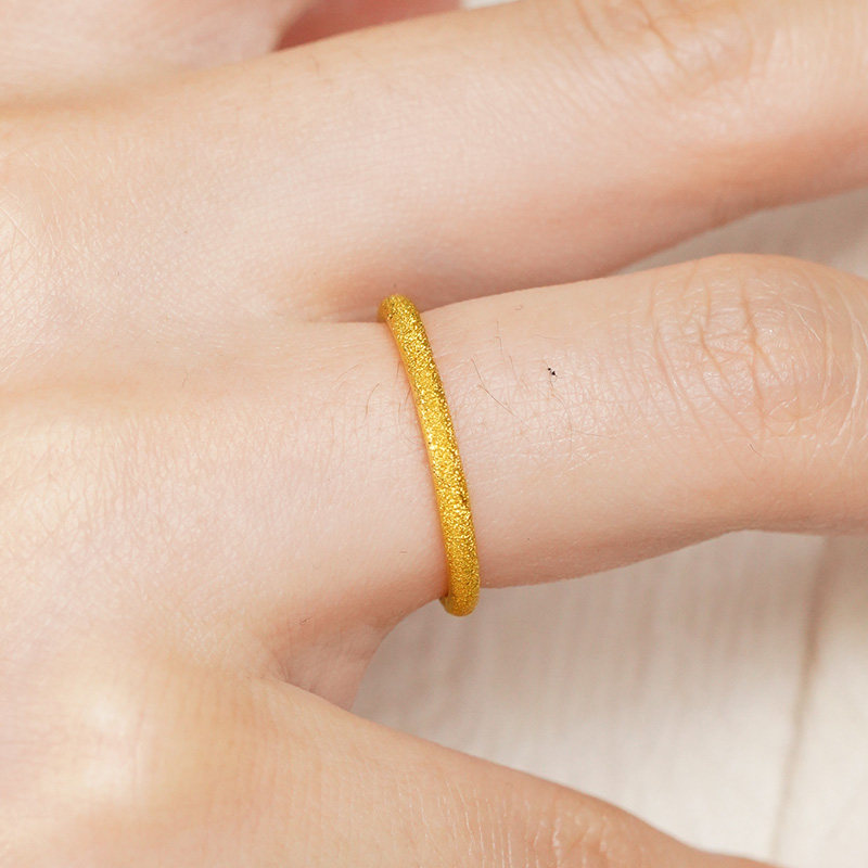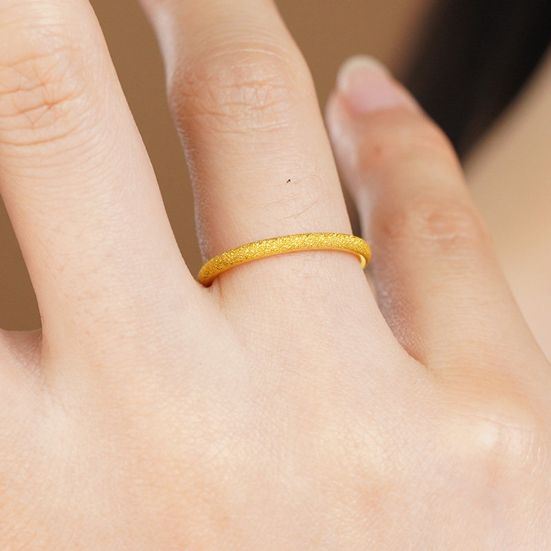 老庙黄金足金闪耀磨砂戒指点点金光星河烂漫简约大气贴合手指舒适