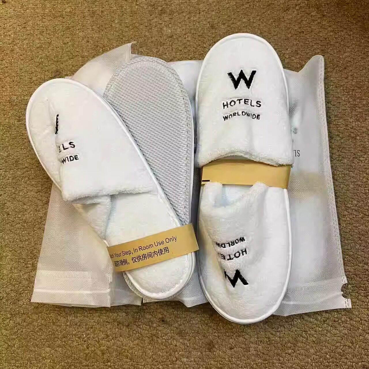 W酒店JW万豪万丽万怡五星级酒店拖鞋 防滑厚底内绒奢牌酒店拖鞋