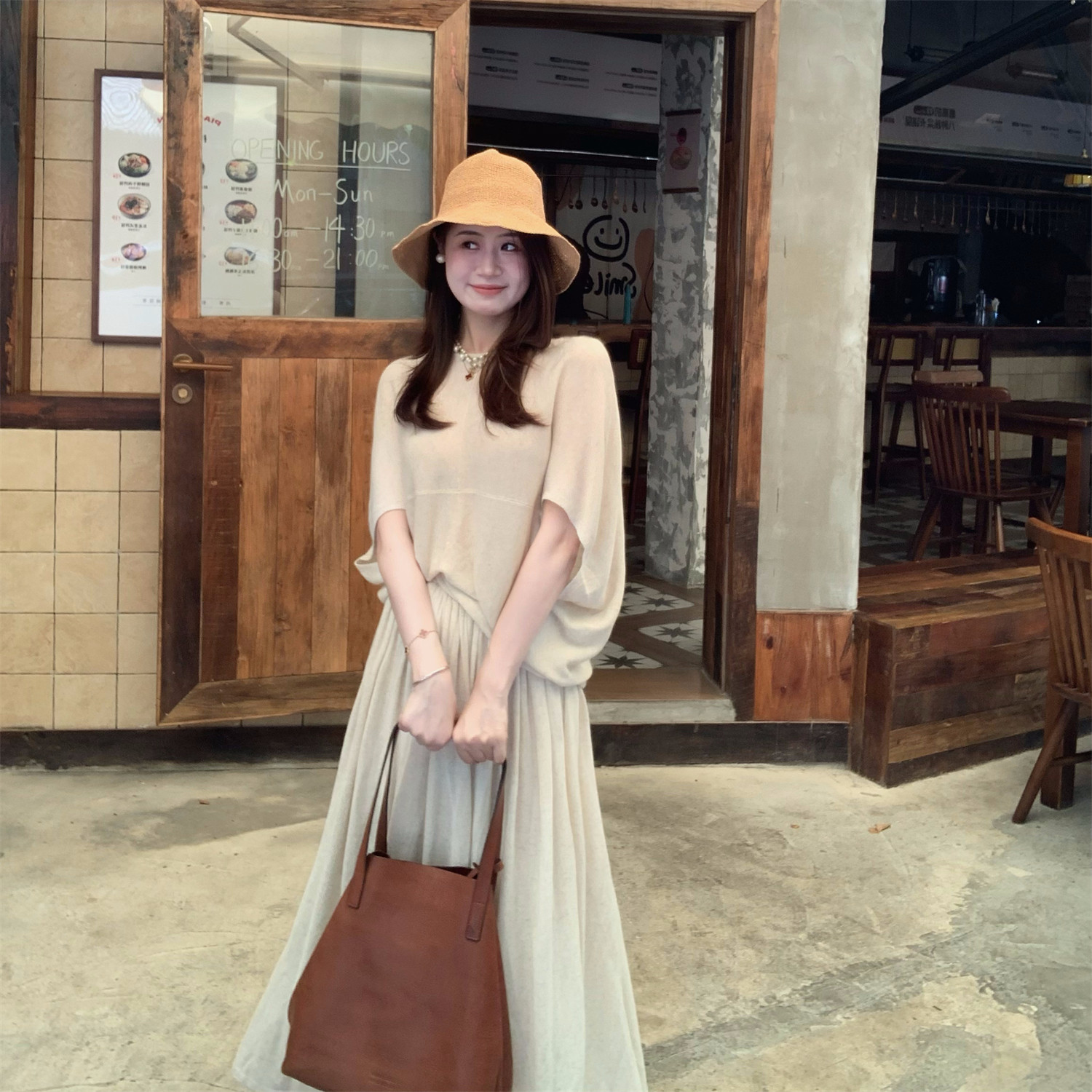 Echoone Basic set 亚麻针织慵懒套装女极简高级优雅气质上衣半裙