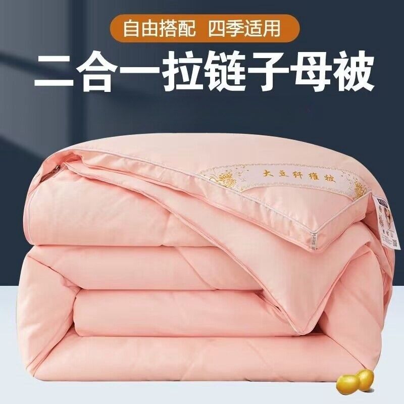 大豆纤维被子母被二合一拉链款双人春秋被芯四季通用加厚保暖冬被