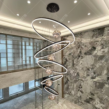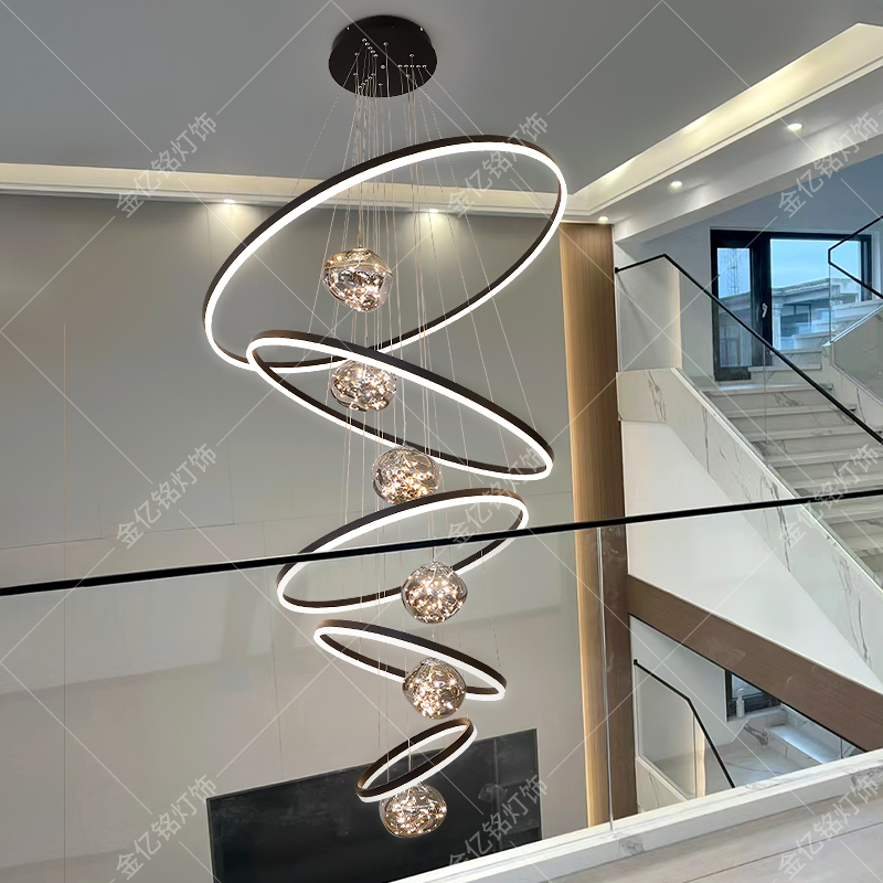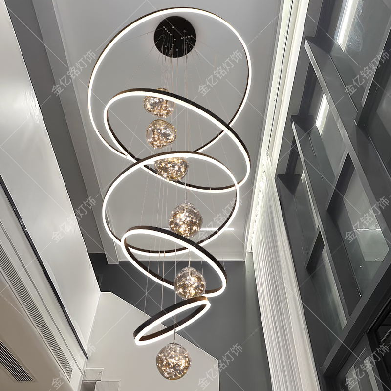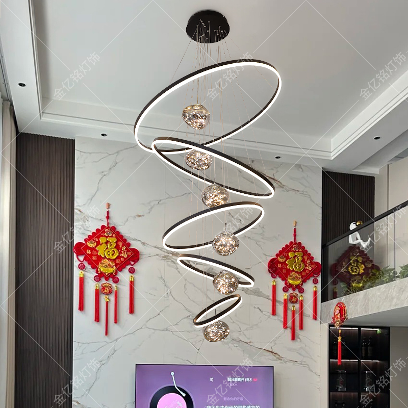 挑空复式楼客厅大吊灯大厅现代简约别墅挑高农村自建房小loft公寓