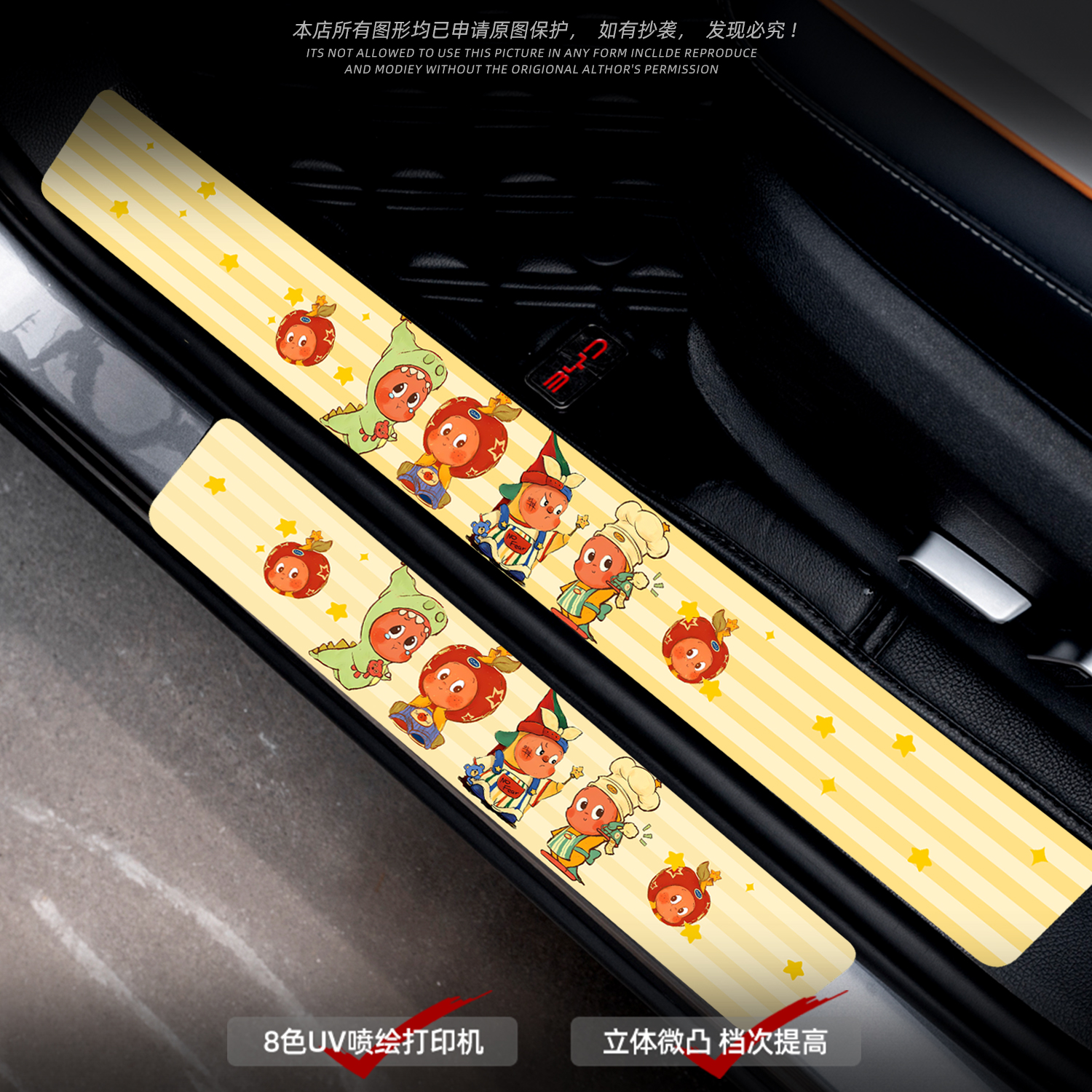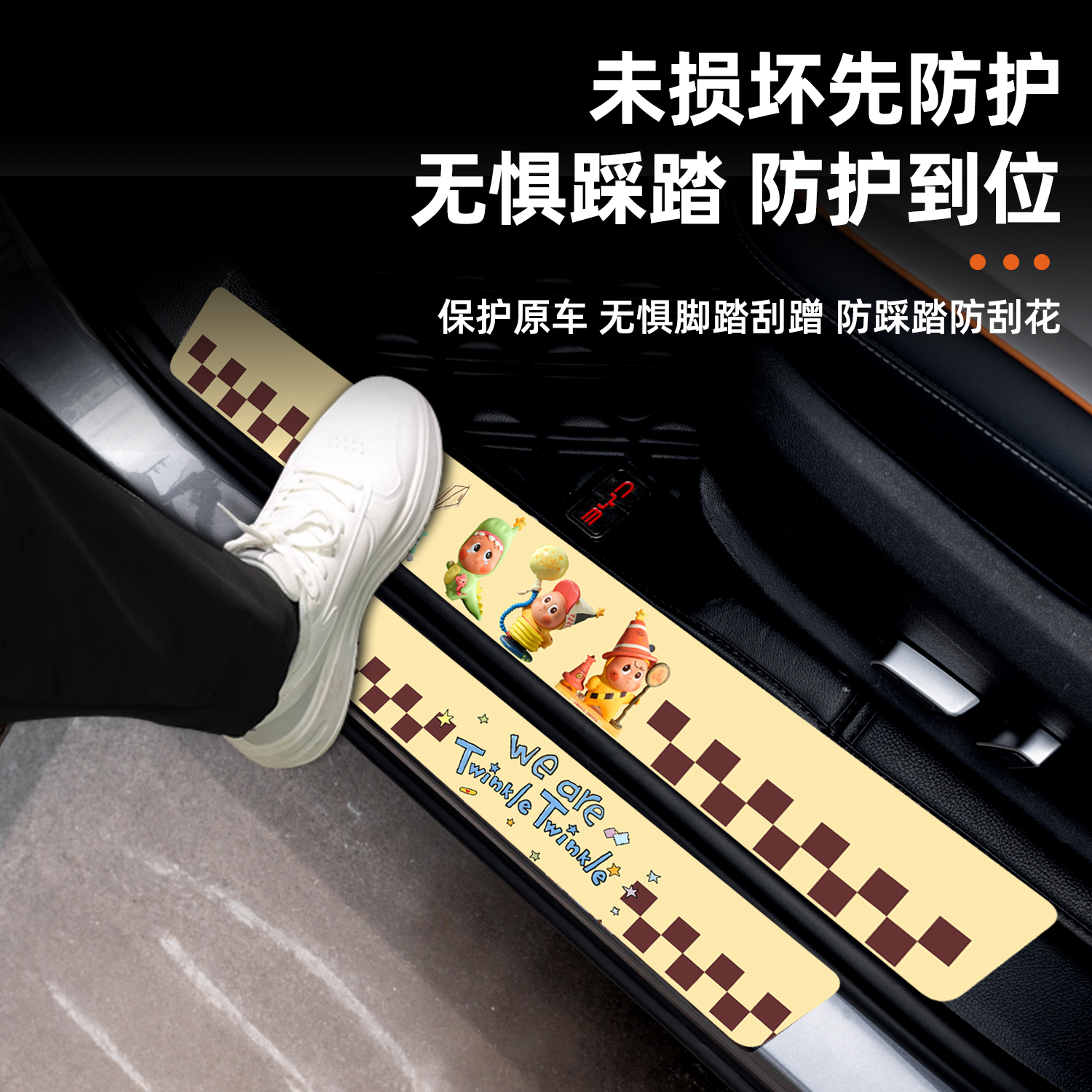 适用于星星人汽车门槛两侧踏板皮革防磨耐脏装饰贴防剐蹭创意贴纸