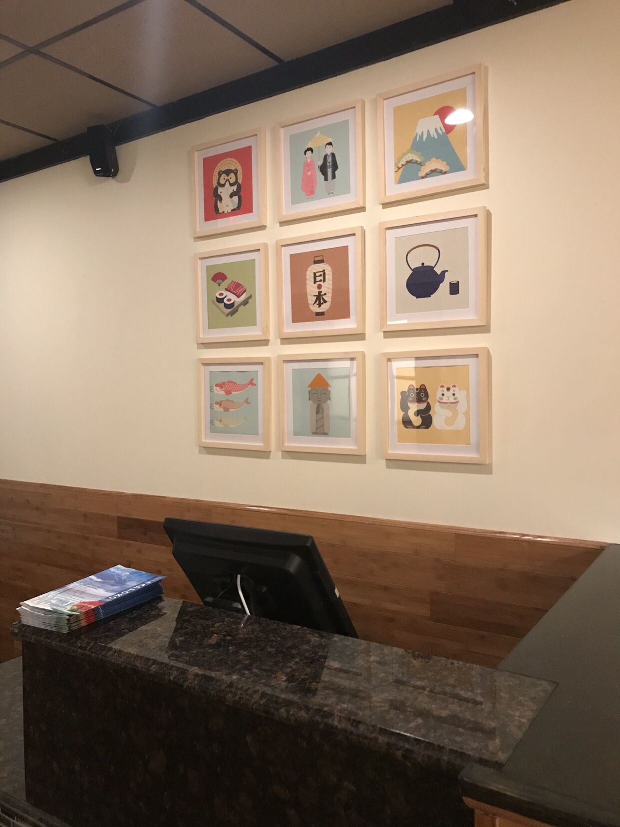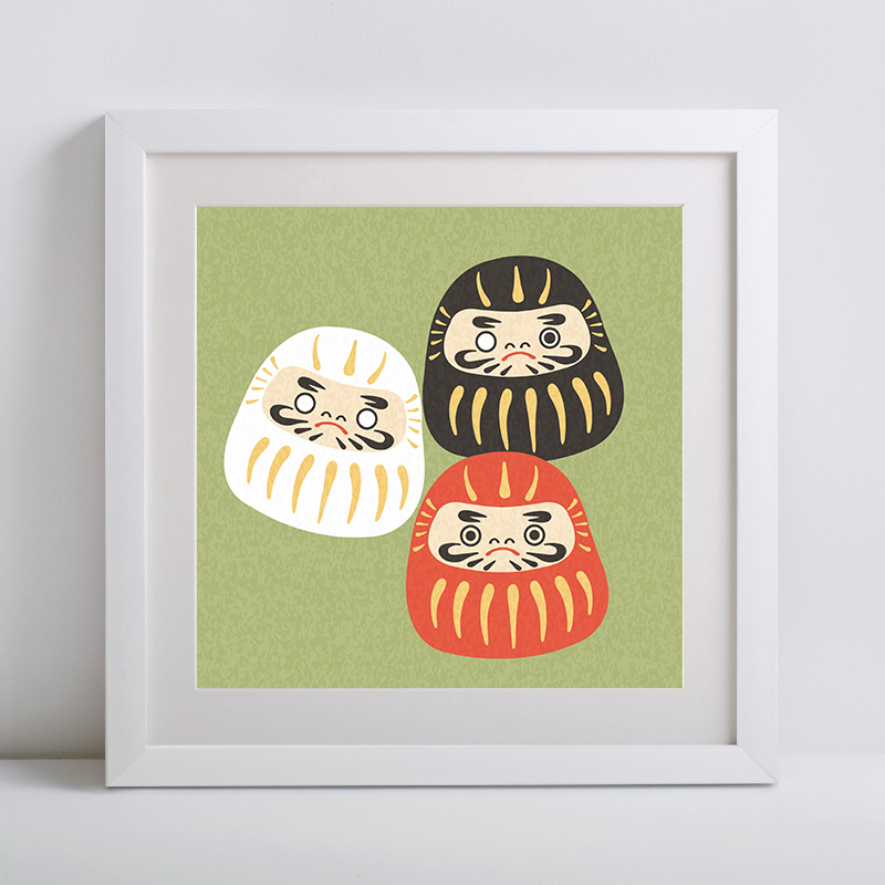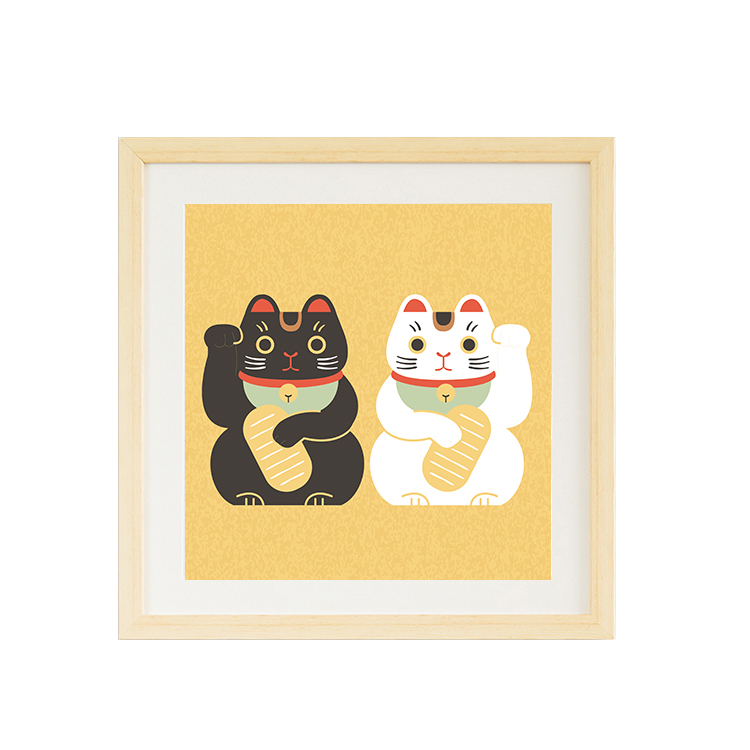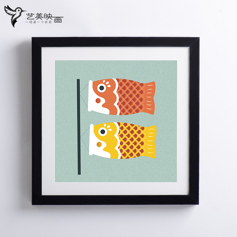 【日本特色手办】日式达摩招财猫鲤鱼旗吉祥物富士山装饰挂画有框