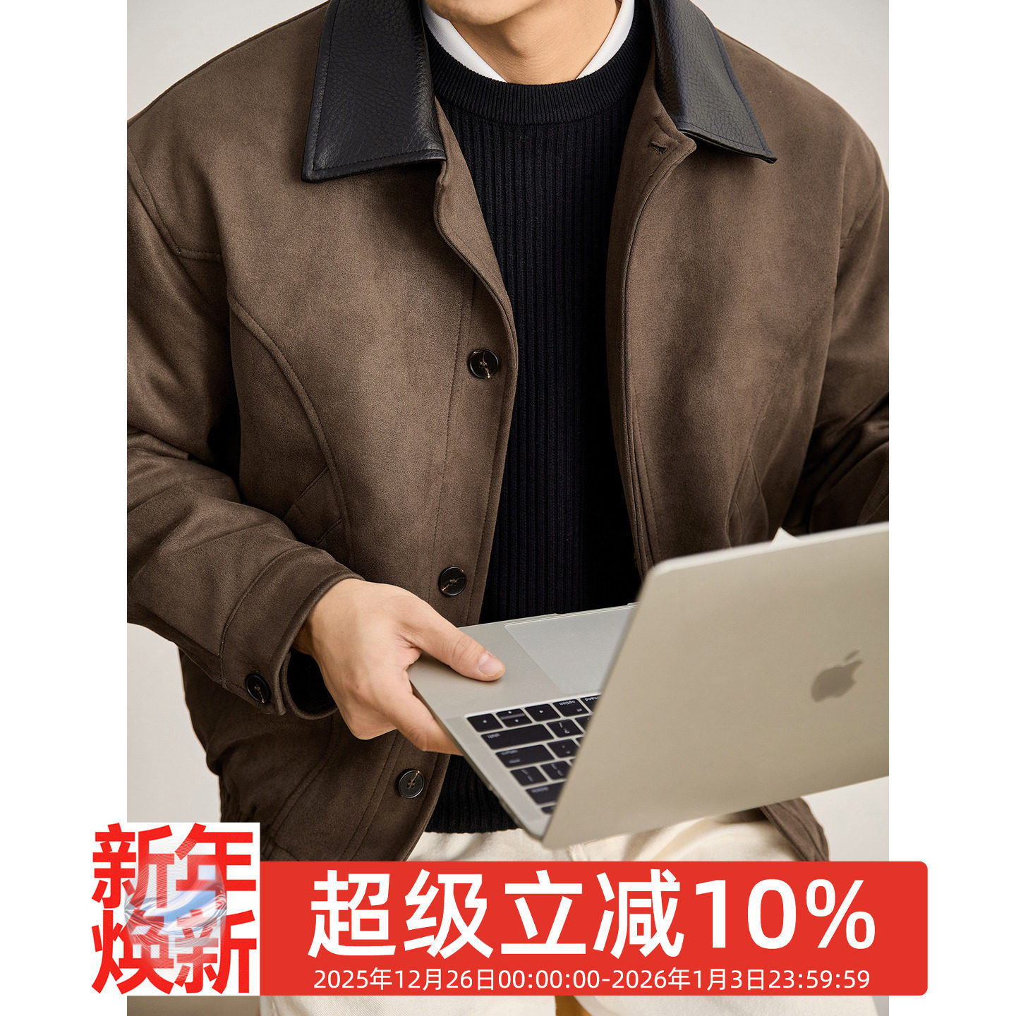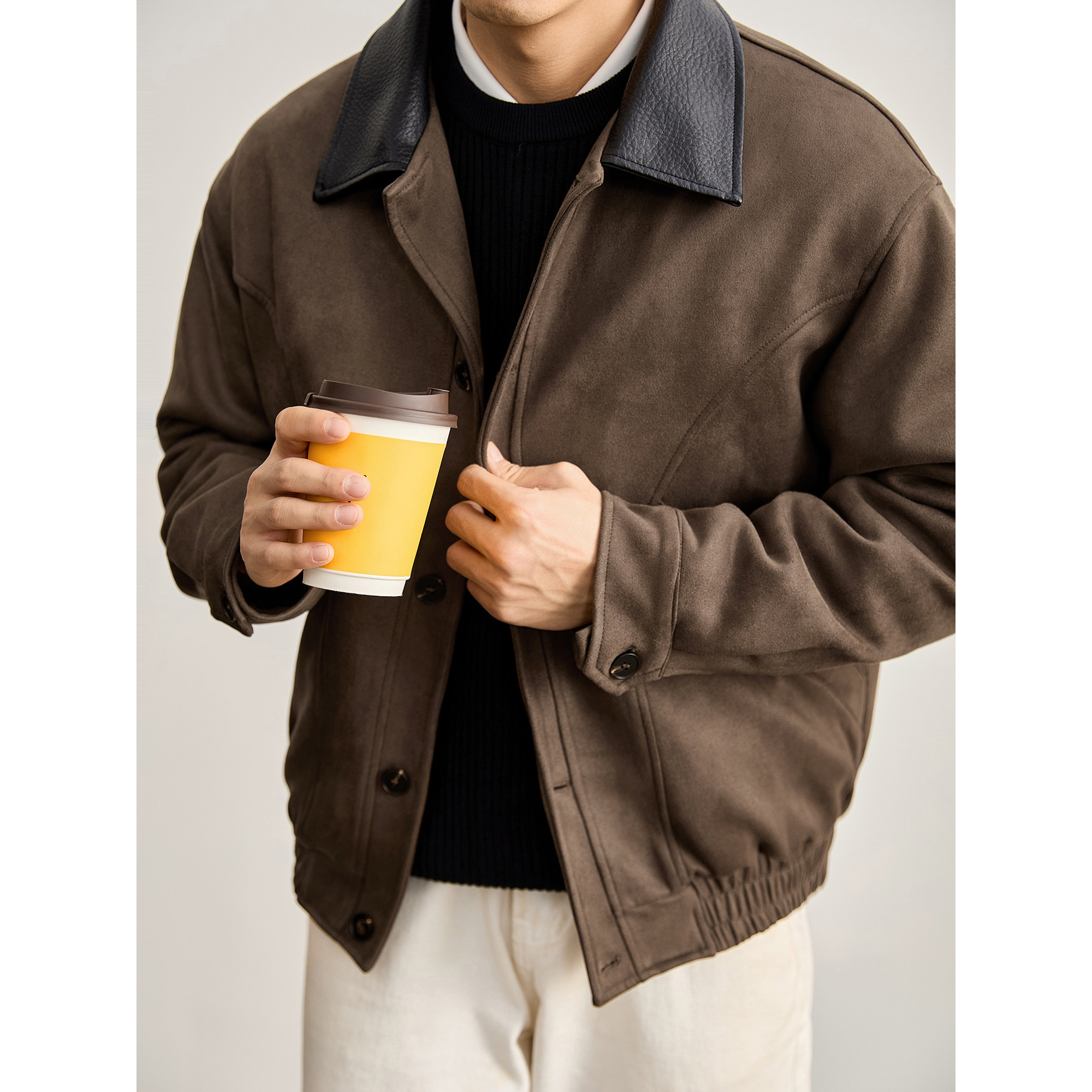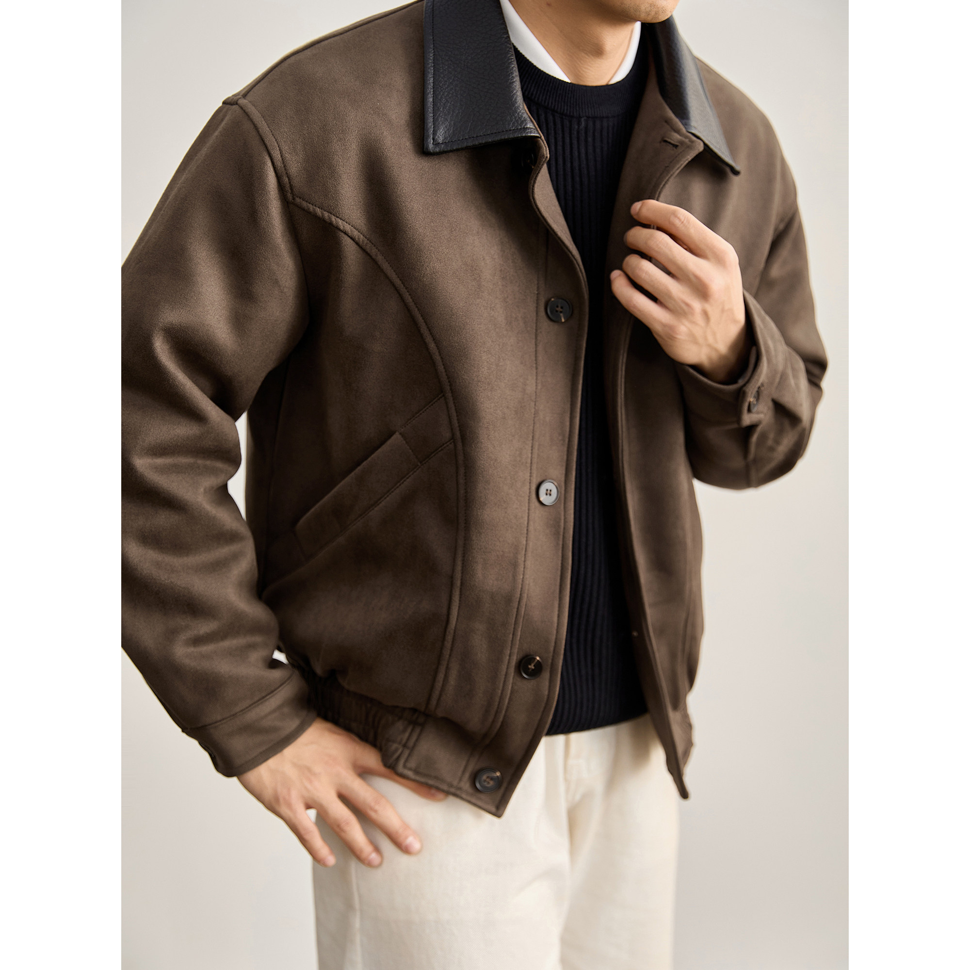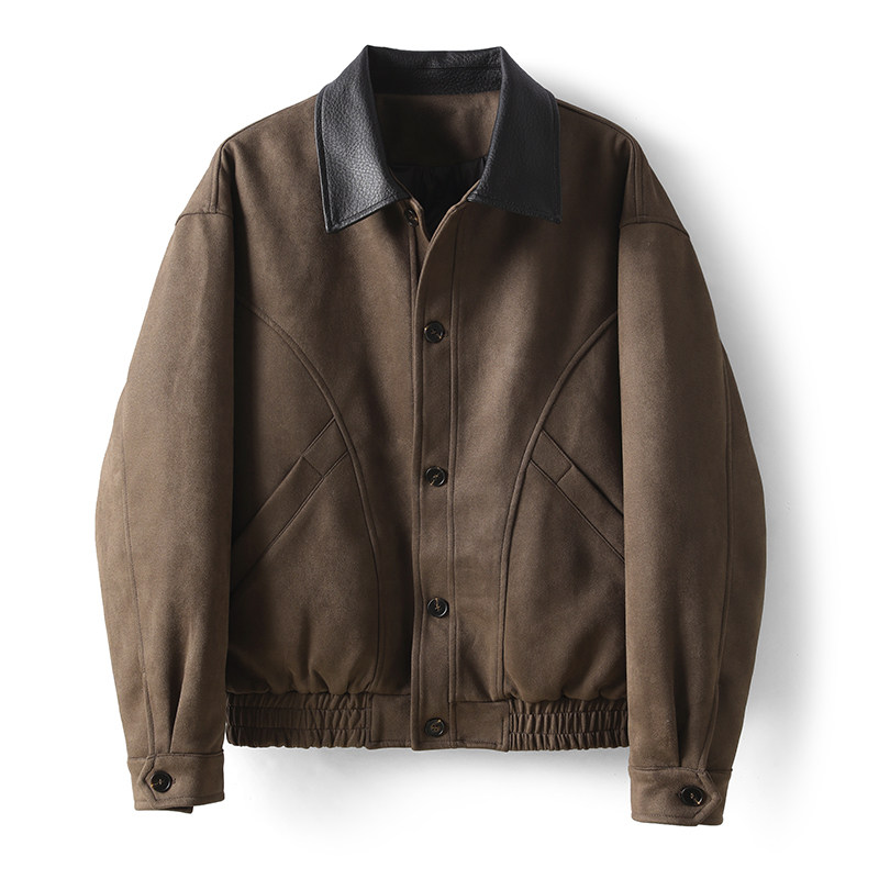LUUD 美式老钱麂皮绒短款夹克男秋冬85白鸭绒皮质翻领羽绒服外套