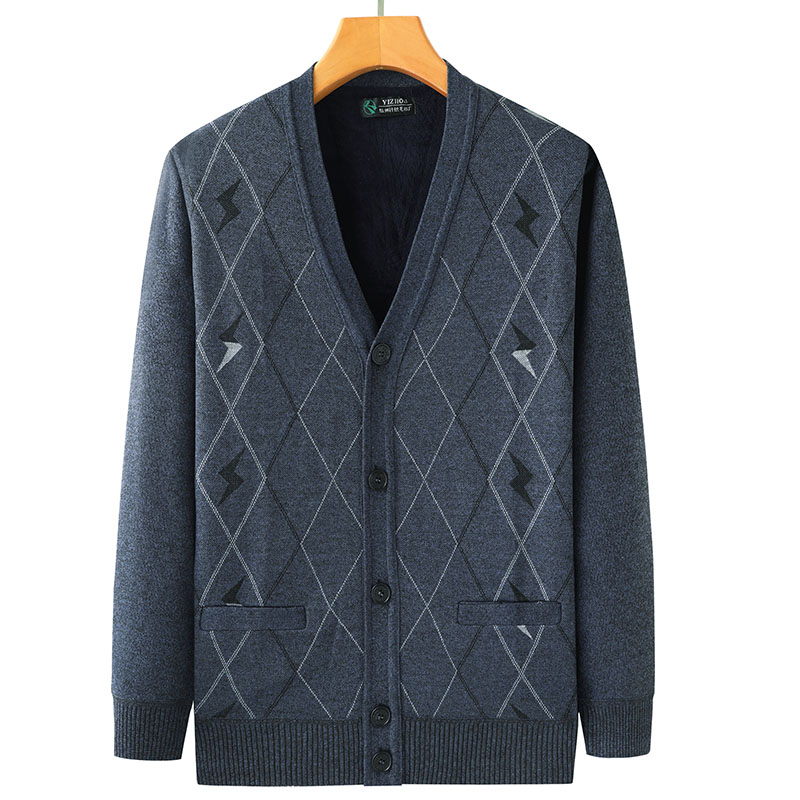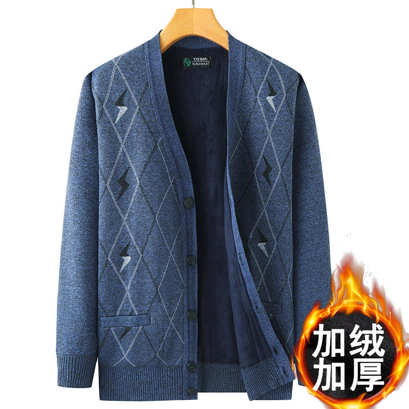 中老年男装开衫加绒加厚羊毛衫男V领老年人毛衣秋冬季外套爸爸装