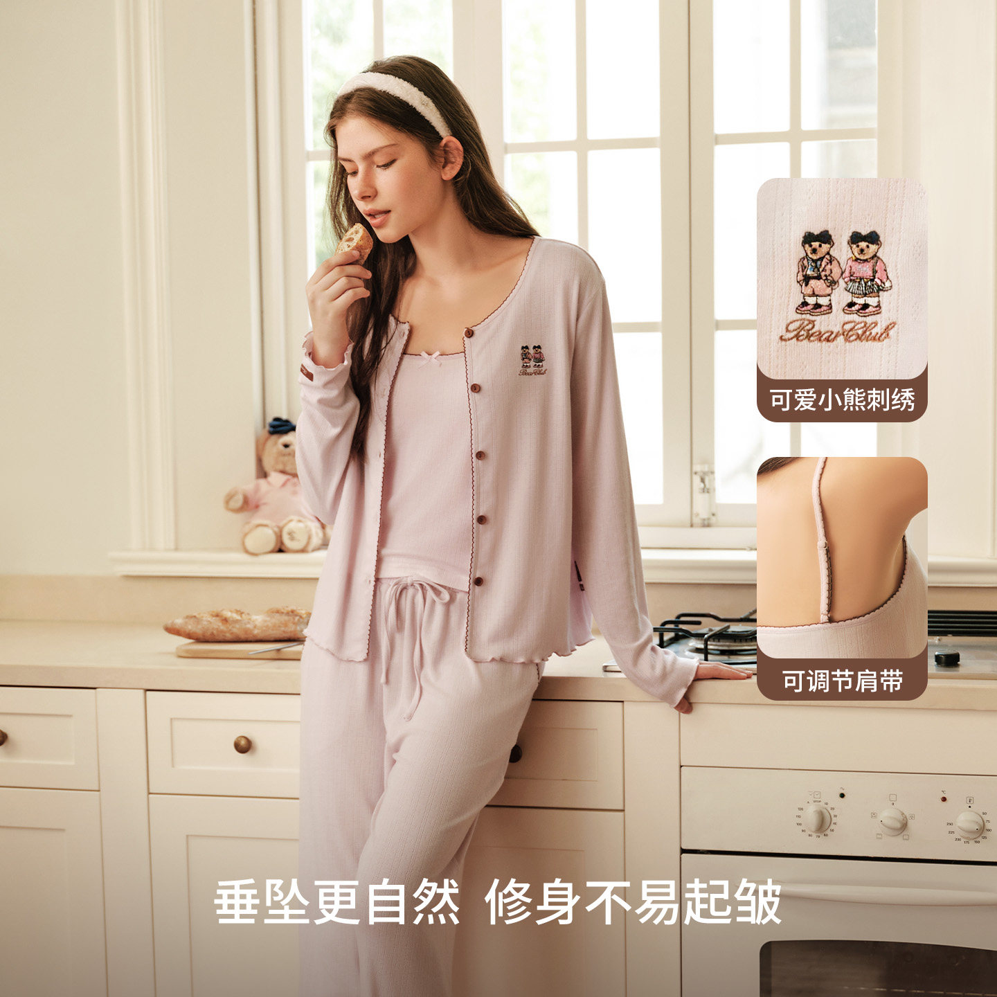 TeenieWeenie小熊睡衣女士2026秋季新款吊带开衫三件套家居服套装