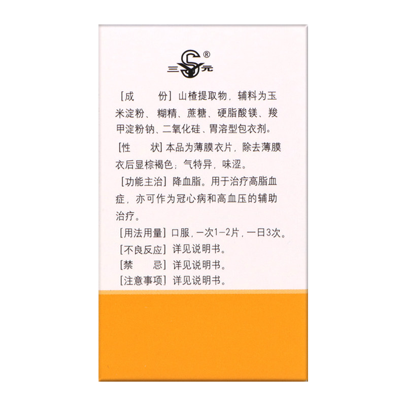三元 山楂精降脂片100片/盒降血脂辅助治疗冠心病高血压正品