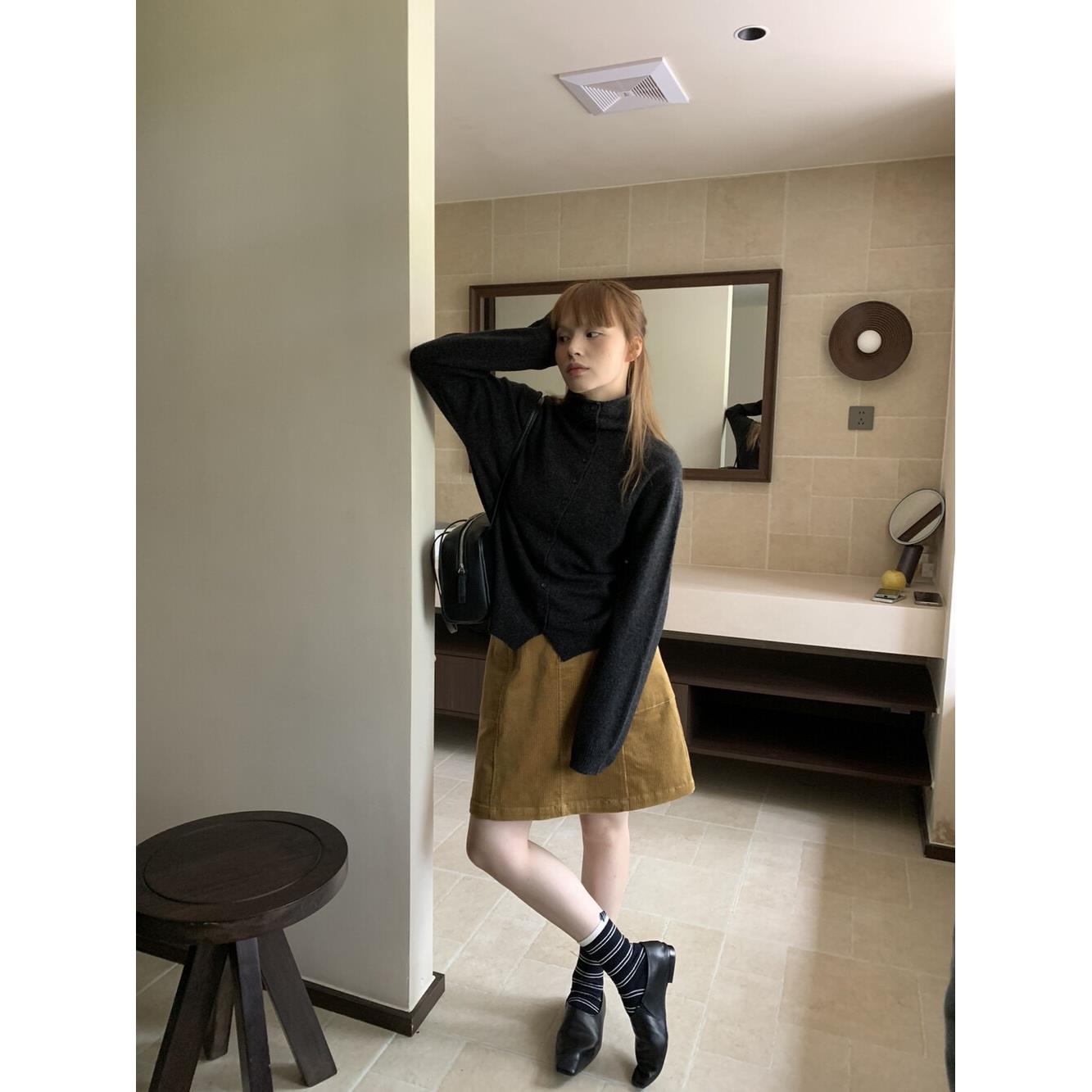 韩系通勤文艺A字短裙2025秋季新款简约百搭款包臀裙半身裙 16806