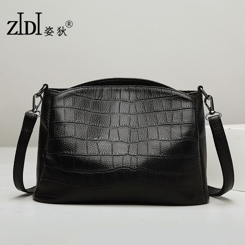 头层牛皮包包女2025新款时尚鳄鱼纹真皮水桶包女式百搭单肩斜挎包