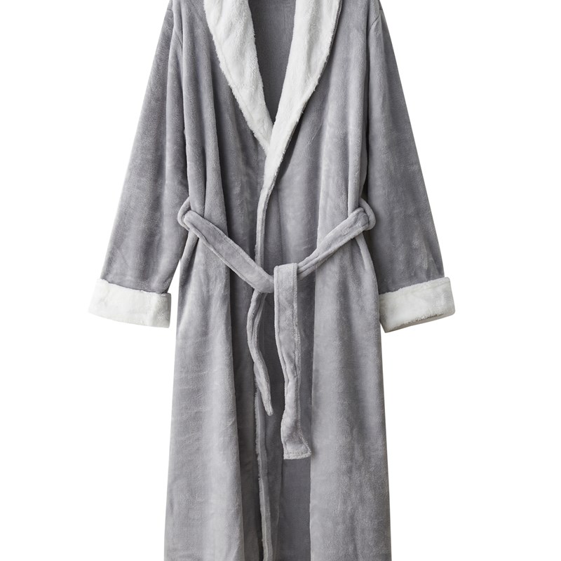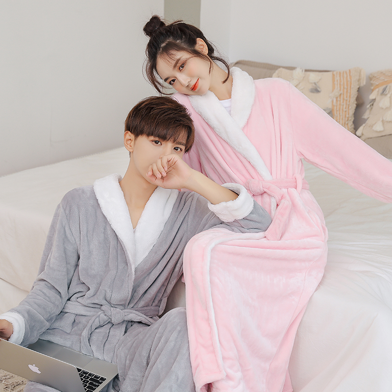 冬季法兰绒睡袍男睡衣加厚女200斤加肥加大码胖mm情侣浴袍超长款