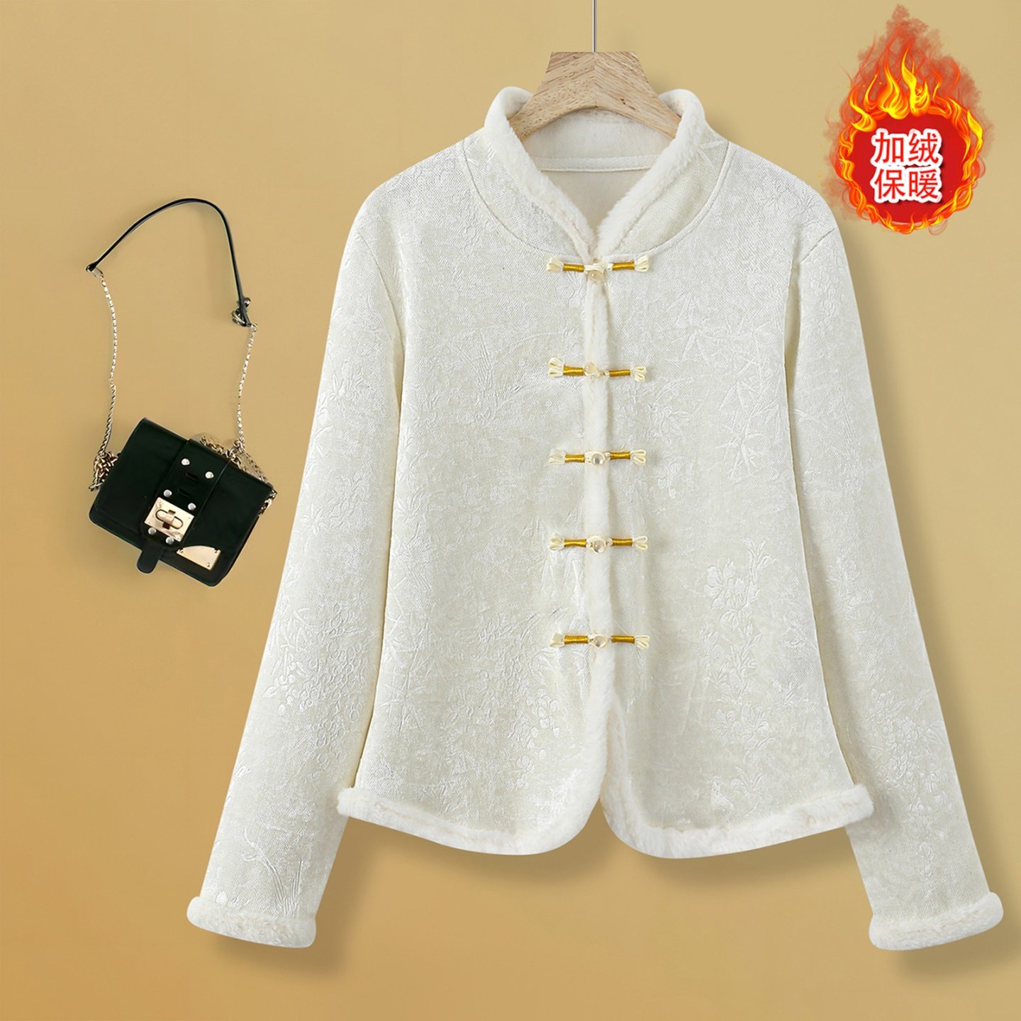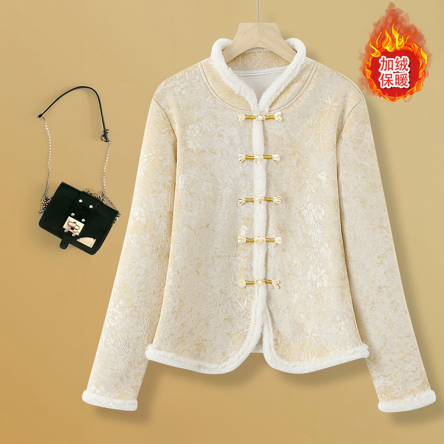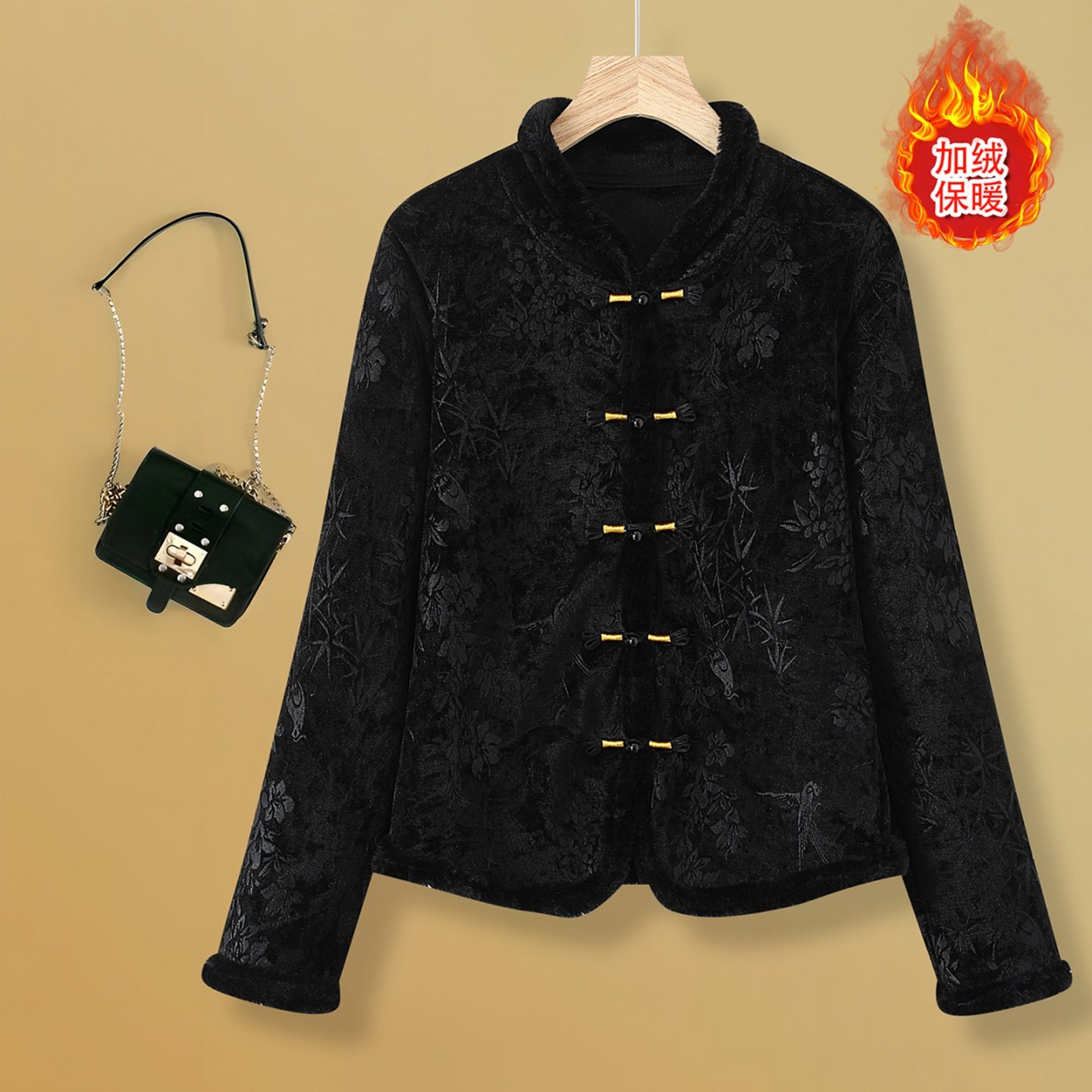新中式国风盘扣立领加绒开衫上衣