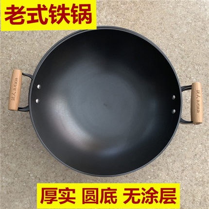 炒菜锅 不粘锅陆川铁人锅加厚耐用无涂层双耳家用商用大铁锅
