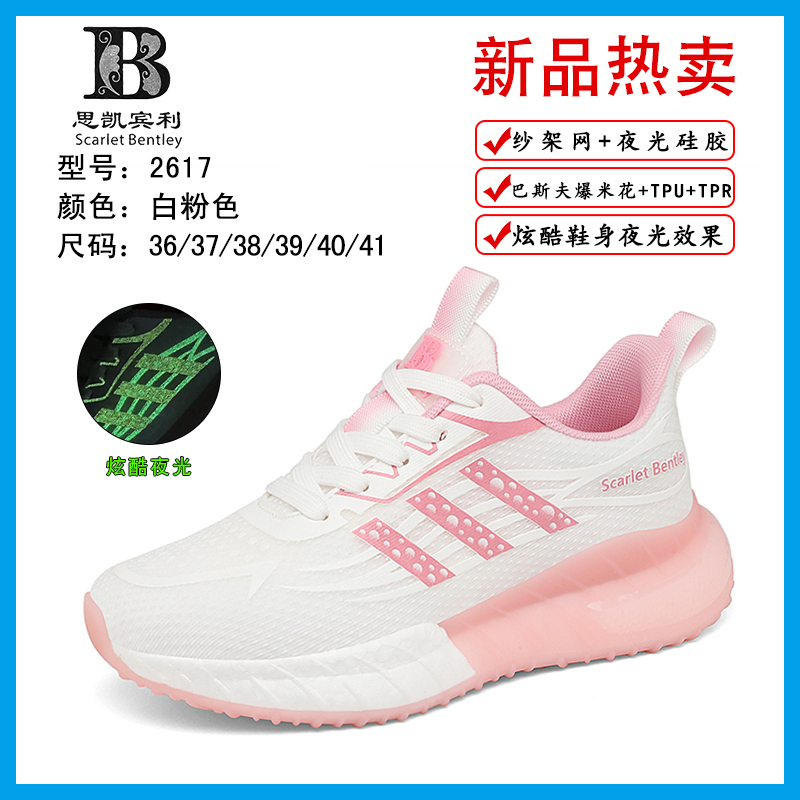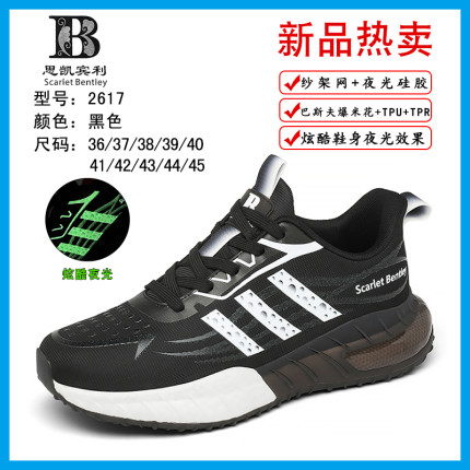 正品思凯宾利运动鞋情侣款爆米花软底潮鞋贾卡网面透气男鞋旅游鞋
