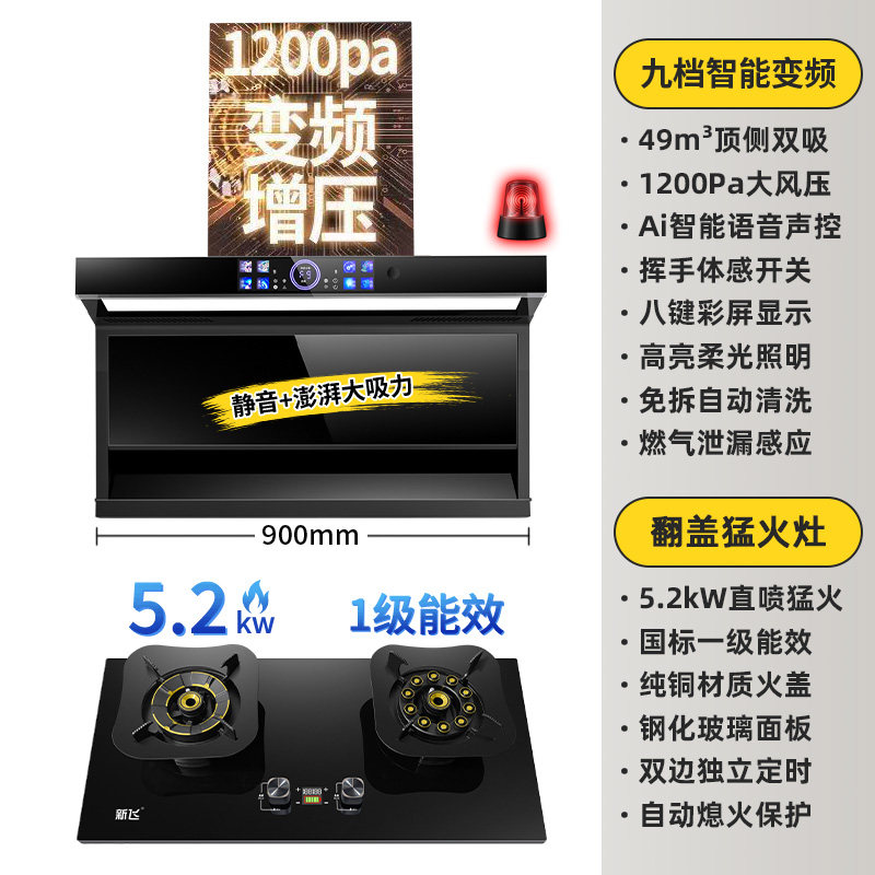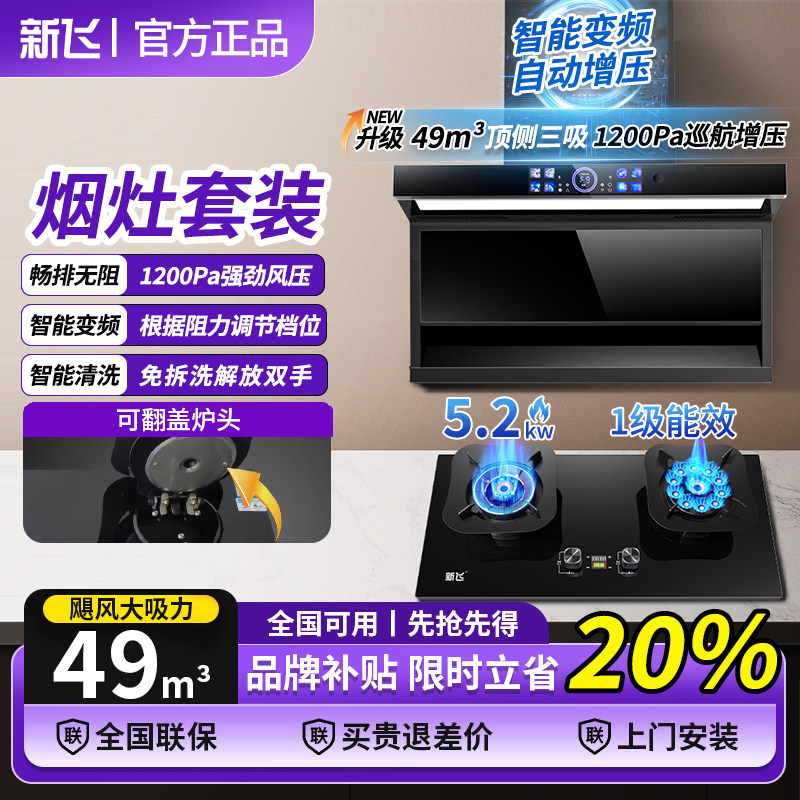 【补贴20%】新飞油烟机家用厨房大吸力抽油烟机九档变频烟灶套装