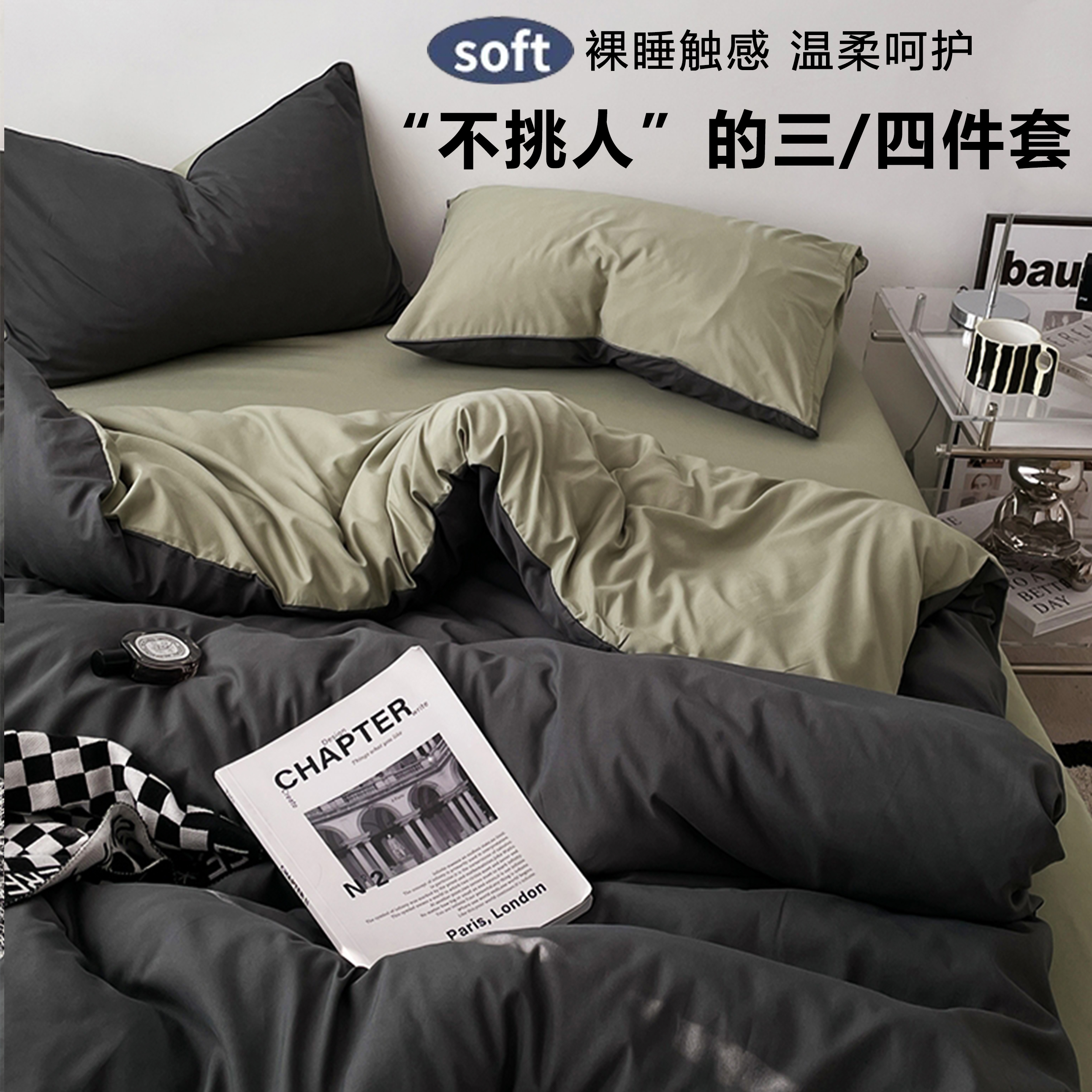 日式简约床上用品四件套纯棉全棉被罩被套学生宿舍床单人三件套4