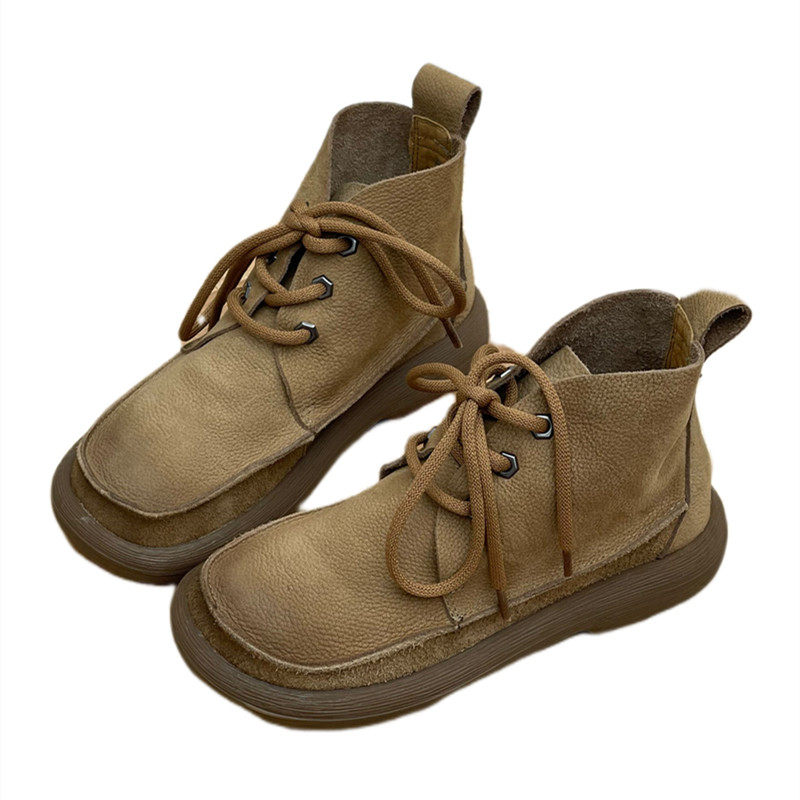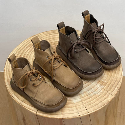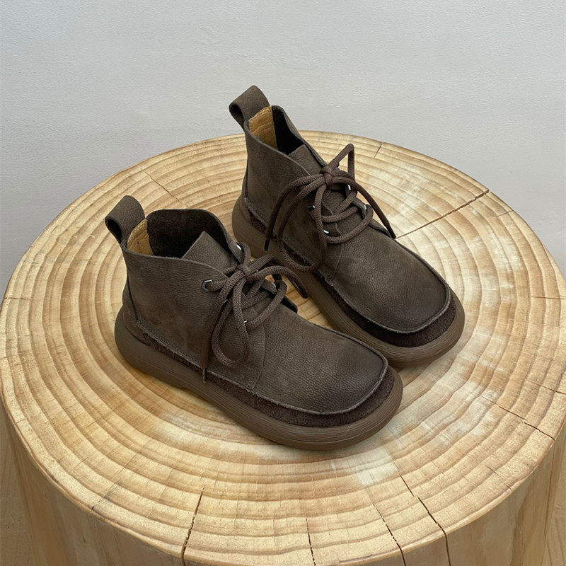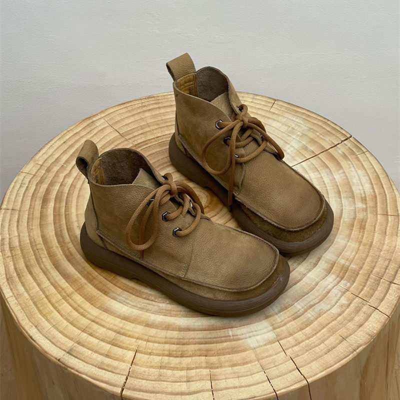 真皮马丁靴女平底2023秋季新款复古系带休闲鞋英伦风软皮软底短靴