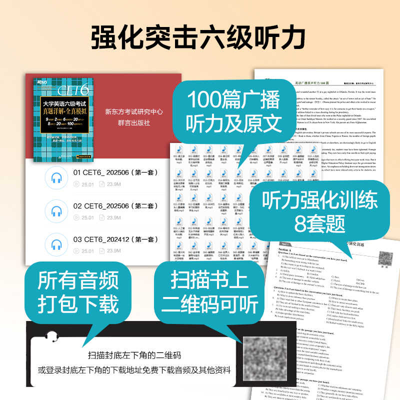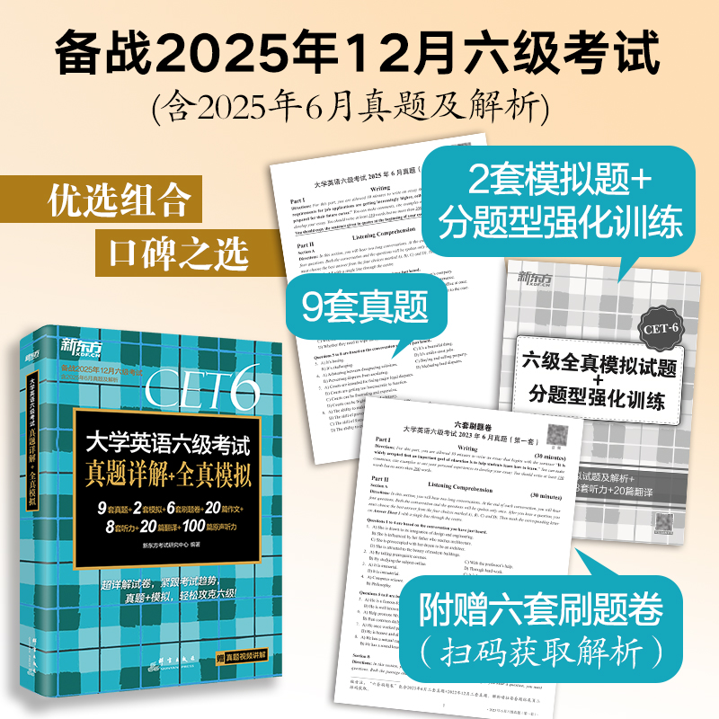 【备考25年12月】六级考试英语真题试卷 大学四六级历年考试真题详解全真模拟词汇书单词阅读理解听力翻译专项预测训练资料cet46