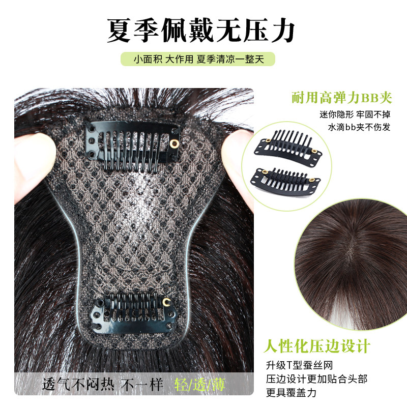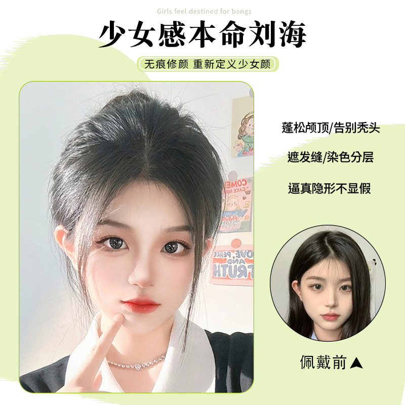 无需发卡八字刘海假发片女头顶真发轻薄无痕隐形增发量魔术发缝贴