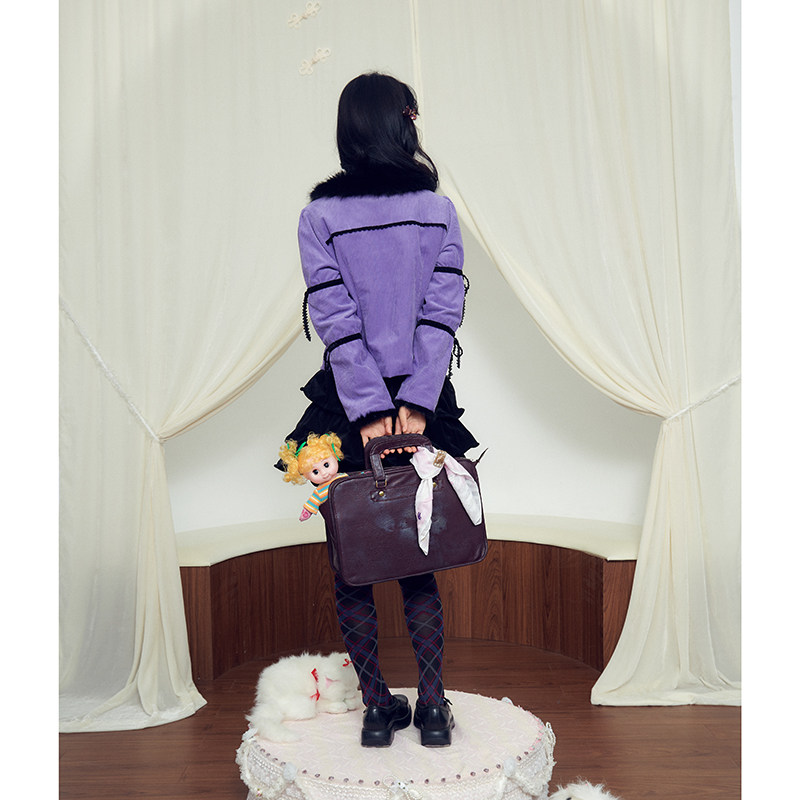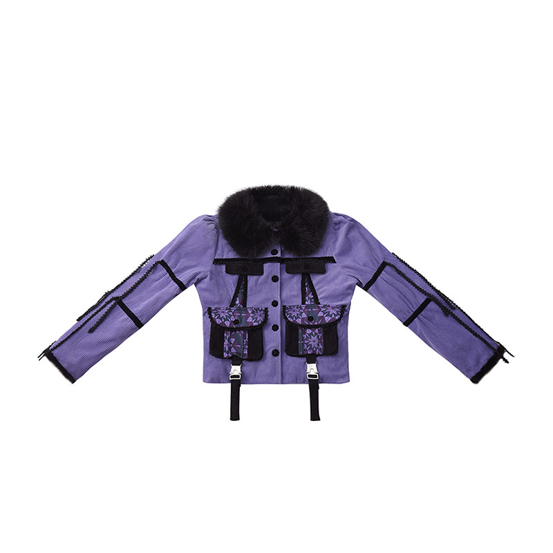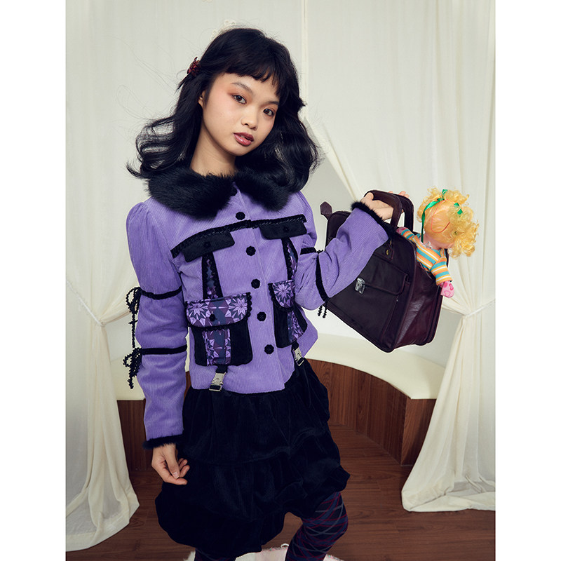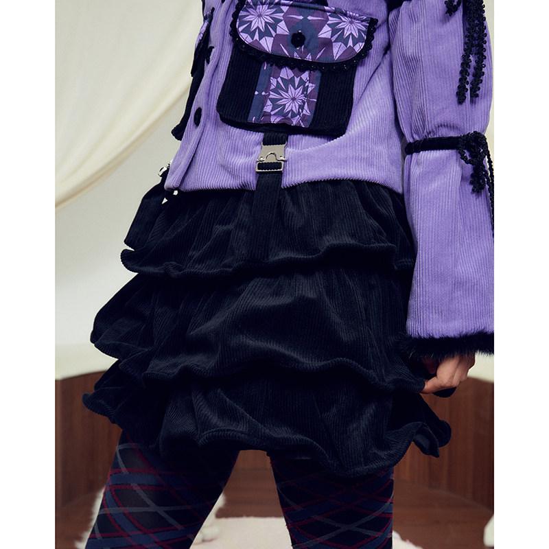 乐饿乐 魔女梦幻万花筒灯芯绒加棉毛领外套+黑色蛋糕裙套装