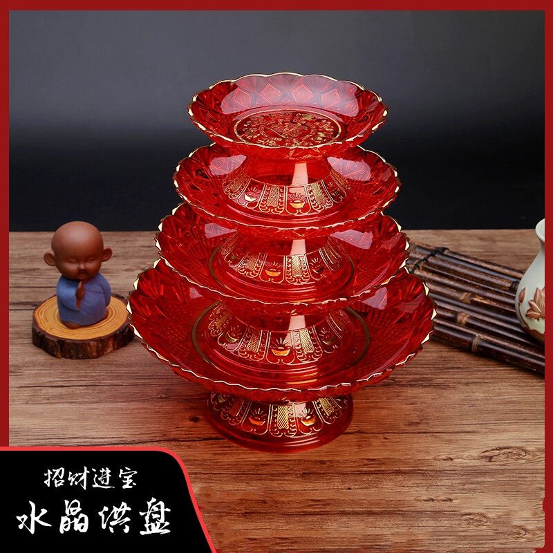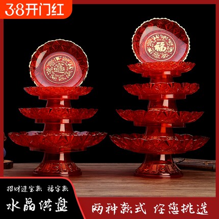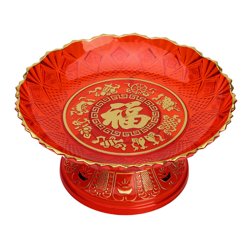 家用红色高脚盘招财果盘贡塑料盘福字盘节日摆盘水果盘宝字盘新款
