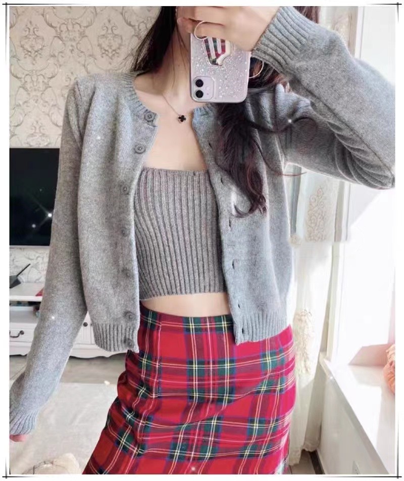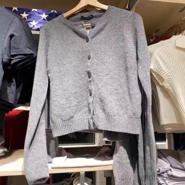 BM官网单排扣开衫女欧美新款休闲纯色显瘦针织衫百搭长袖外套潮
