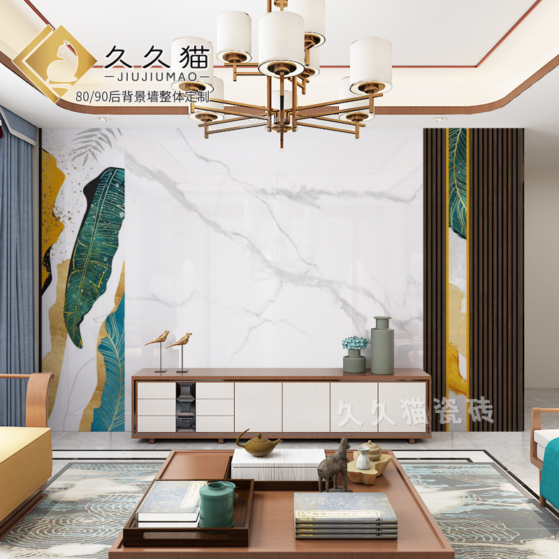 客厅艺术岩板背景墙格栅微晶石电视墙瓷砖影视墙全屋定制沙发墙板