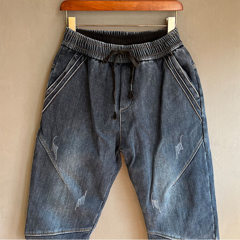 22冬季加绒加厚牛仔裤男新款小脚长裤青年潮流韩版U宽松束脚哈伦