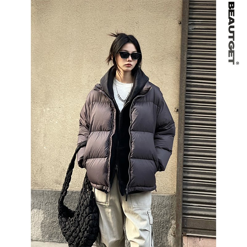 Beautget冬装90白鸭绒轻盈蓬松三防保暖羽绒服男女美式羽绒外套厚