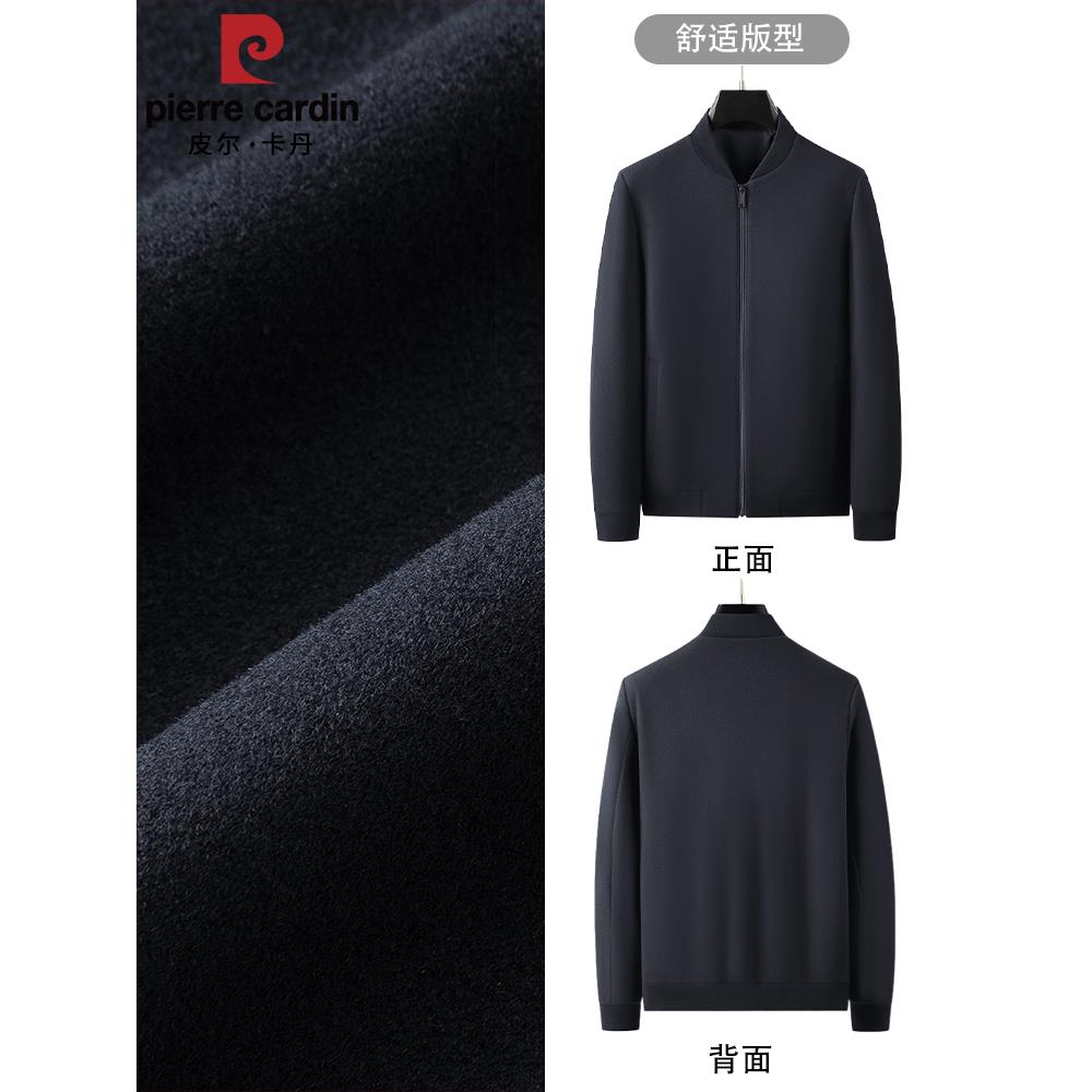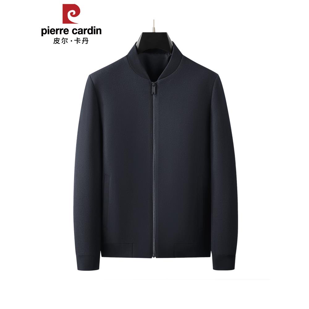 皮尔卡丹高端100%纯羊毛夹克男秋冬季商务爸爸休闲棒球领毛呢外套