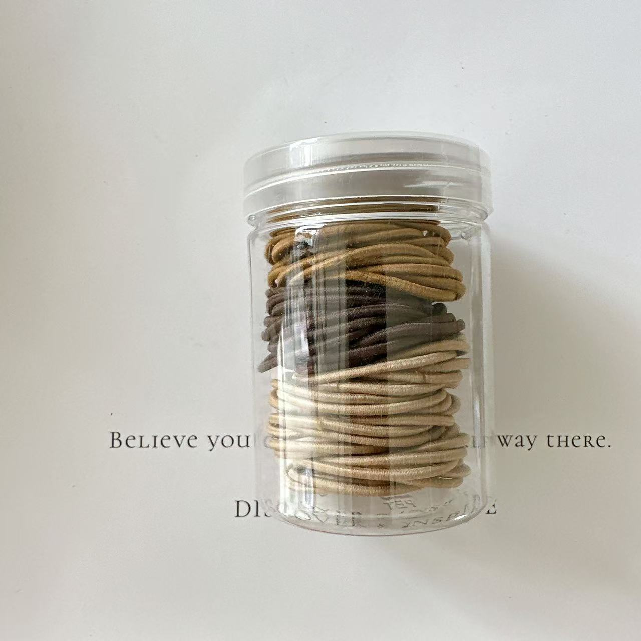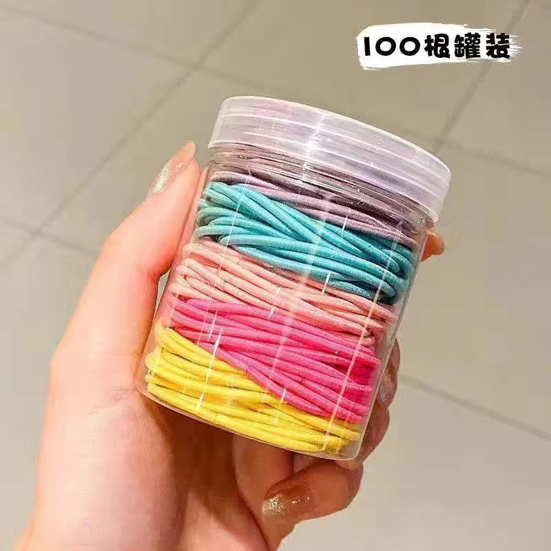 100根瓶装高弹力皮筋桶装发绳头绳发圈简约头绳糖果色黑色
